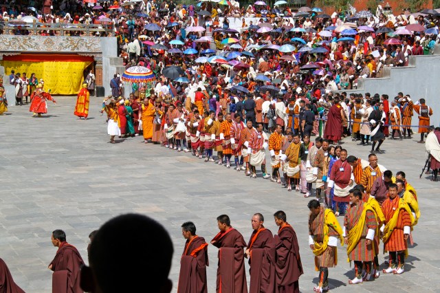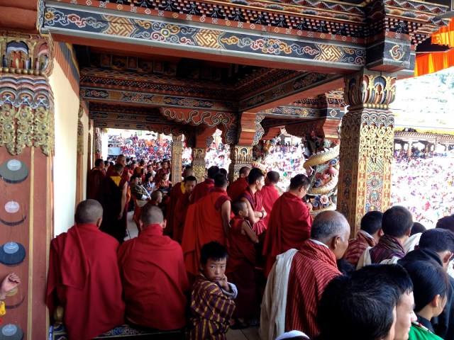 After breakfast we go to the Tshechu Festival which is held at the Tashichho Dzong. Dzong means fortress.