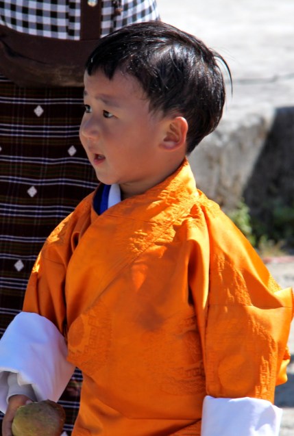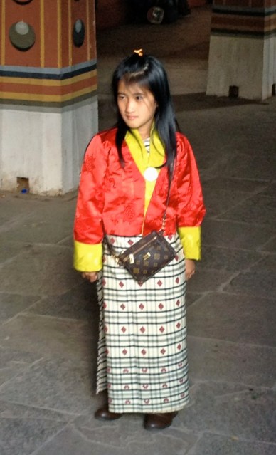 Bhutan separates religious matters and matters of state but the state dictates that the people must wear the traditional dress of ancient Bhutan everyday except for Sunday. The men wear a Gho dress and the women wear a Kira dress. I don’t sense that anyone has a problem wearing the traditional dress. All the people are friendly and children are curious and will speak a few English words. English is required study in school. School is compulsory.