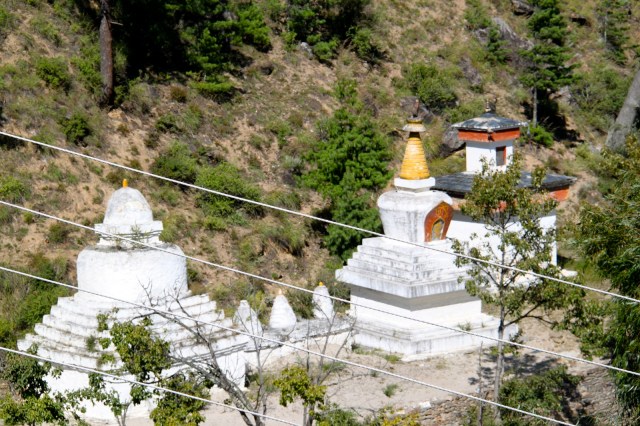 In the afternoon we went for a hike to a 17thcentury temple high on the mountainside above Timphu. We drive up to the beginning of the hike and it is a fairly flat walk of about 3 kilometers but we are sucking air at 9000 feet and the uphill portions of the hike practically bring us to our knees. Hopefully we will acclimate soon.