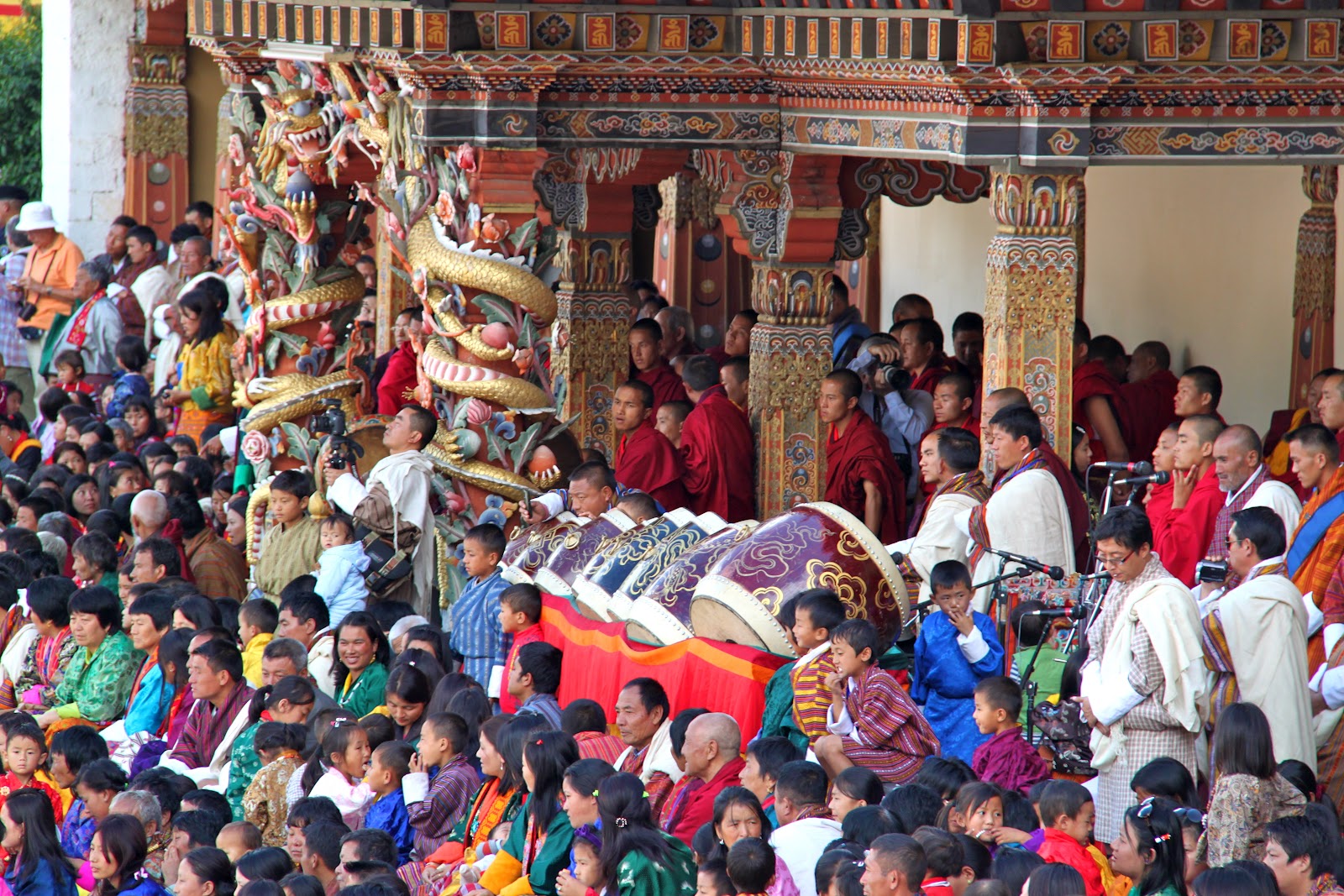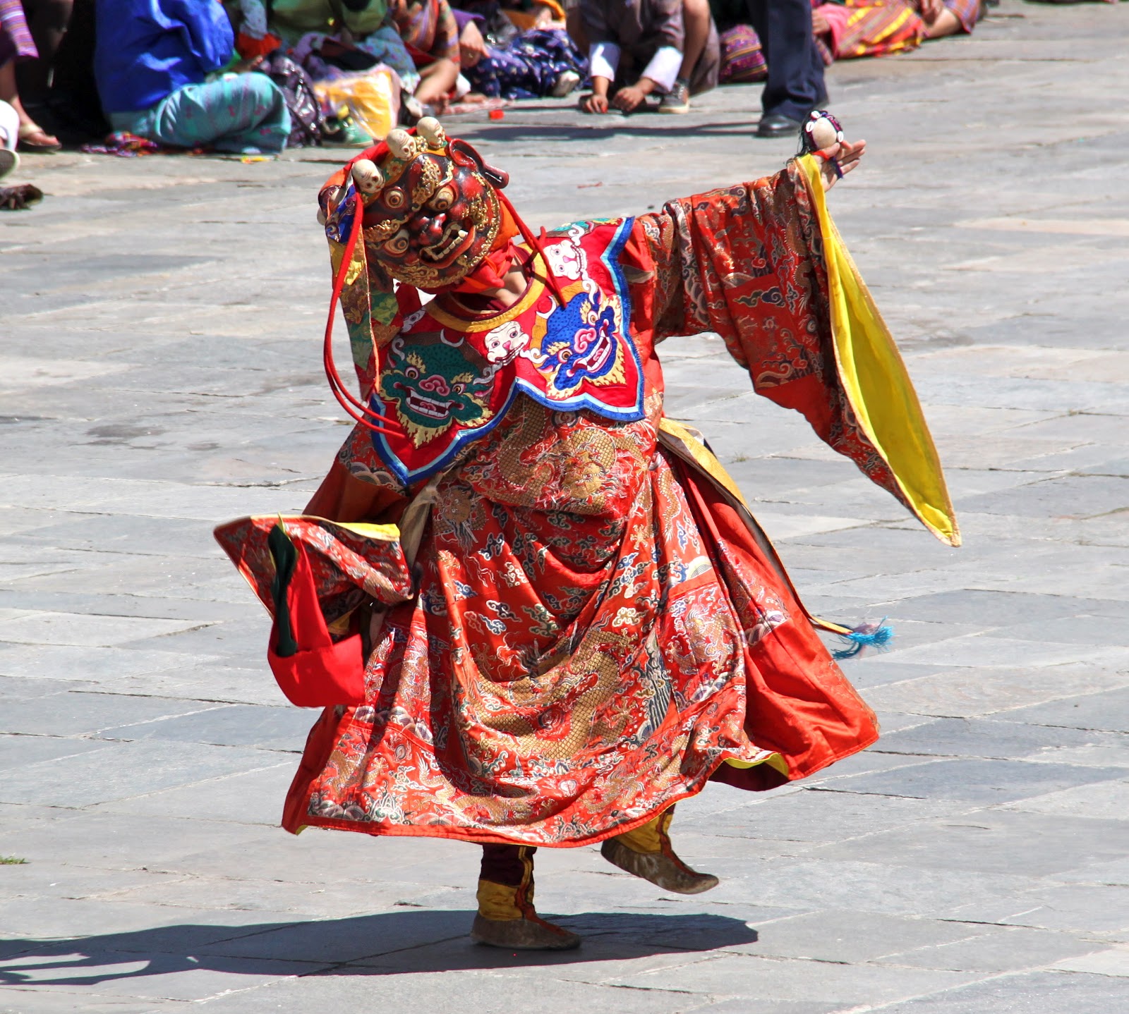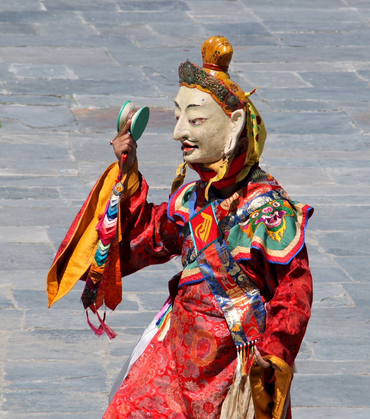 threincarnation of the Guru Rimpoche into the square and up the stairs next to us in front of the tent with all of the monks.