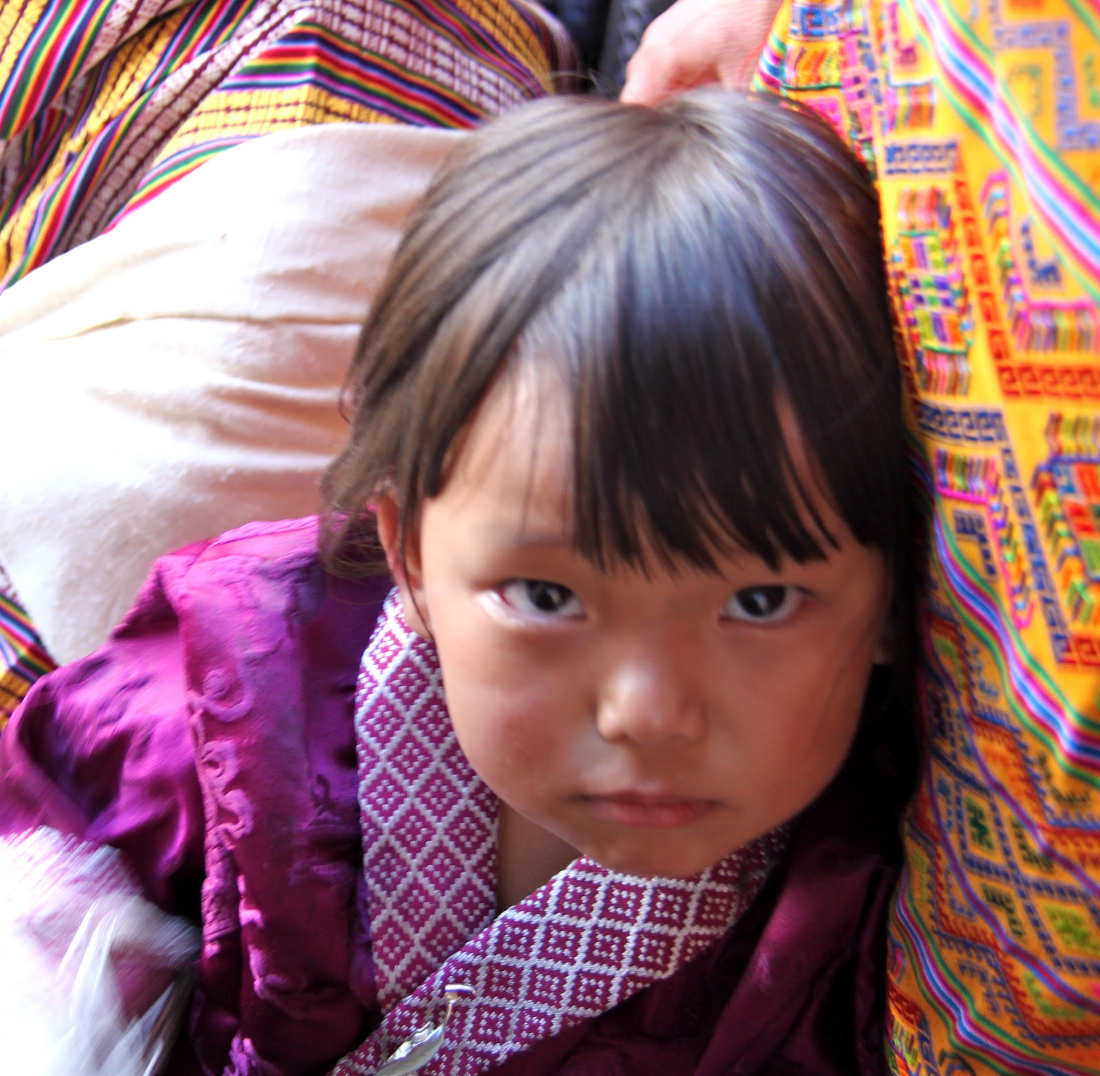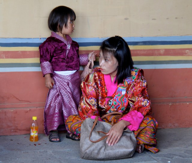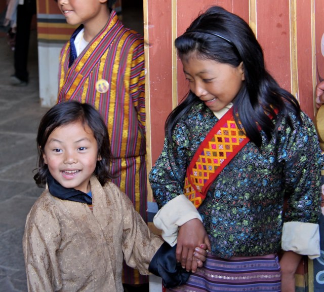 Bhutan separates religious matters and matters of state but the state dictates that the people must wear the traditional dress of ancient Bhutan everyday except for Sunday. The men wear a Gho dress and the women wear a Kira dress. I don’t sense that anyone has a problem wearing the traditional dress. All the people are friendly and children are curious and will speak a few English words. English is required study in school. School is compulsory.