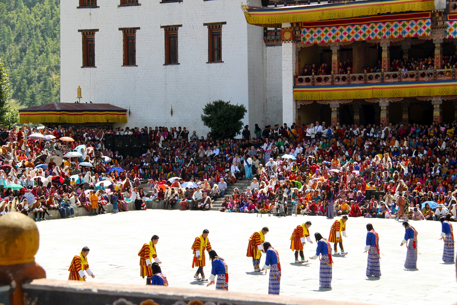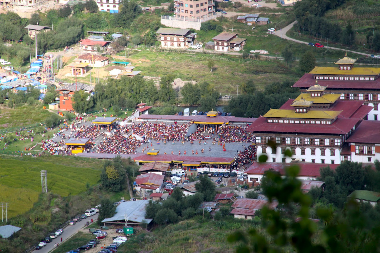After breakfast we go to the Tshechu Festival which is held at the Tashichho Dzong. Dzong means fortress.
