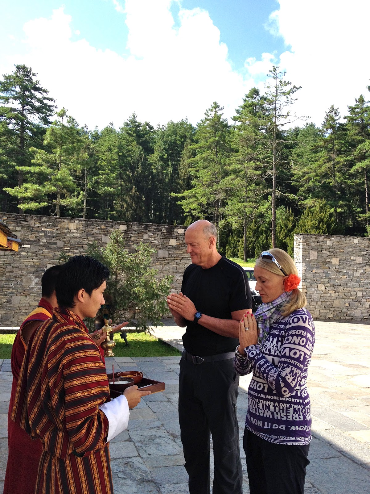 A blessing was given to us by the lama as we departed the Amankora Lodge at Thimphu to drive to our next lodge at Gangtey.