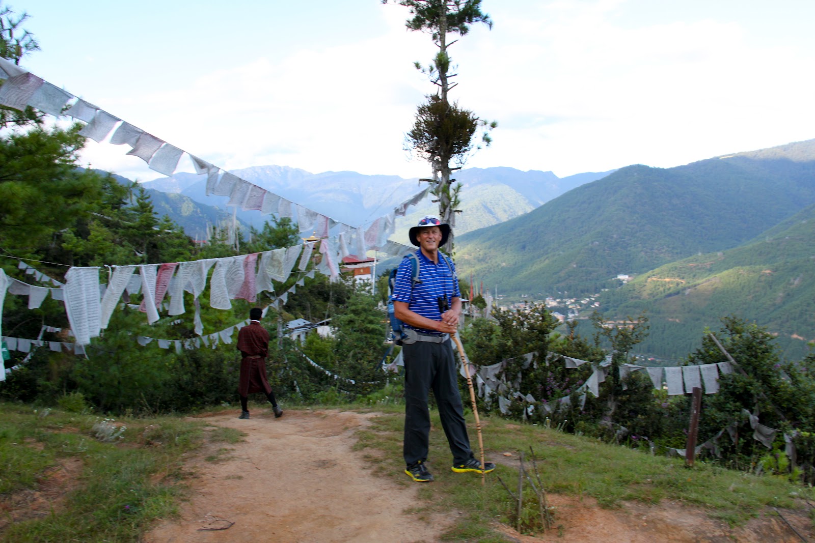 In the afternoon we went for a hike to a 17thcentury temple high on the mountainside above Timphu. We drive up to the beginning of the hike and it is a fairly flat walk of about 3 kilometers but we are sucking air at 9000 feet and the uphill portions of the hike practically bring us to our knees. Hopefully we will acclimate soon.