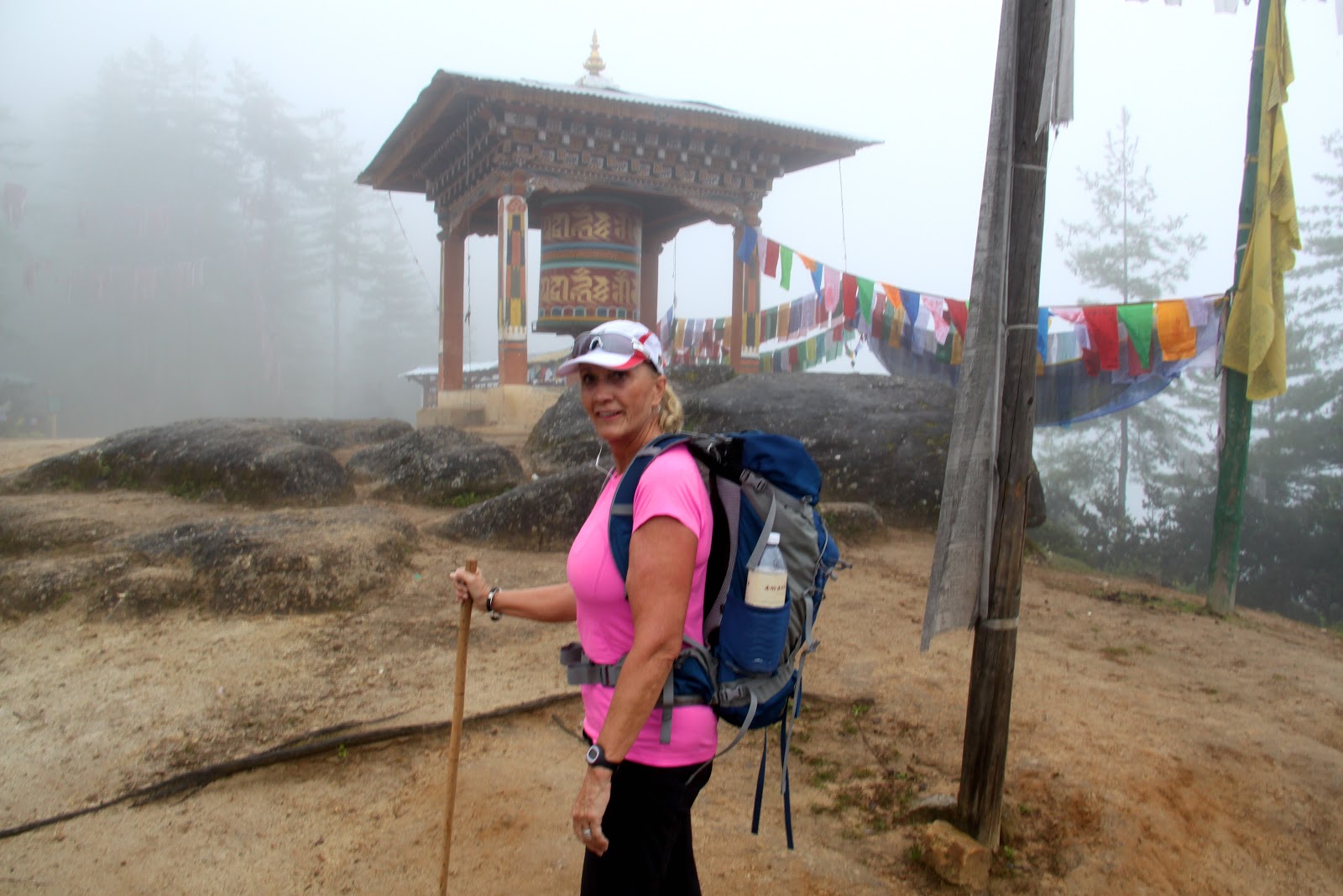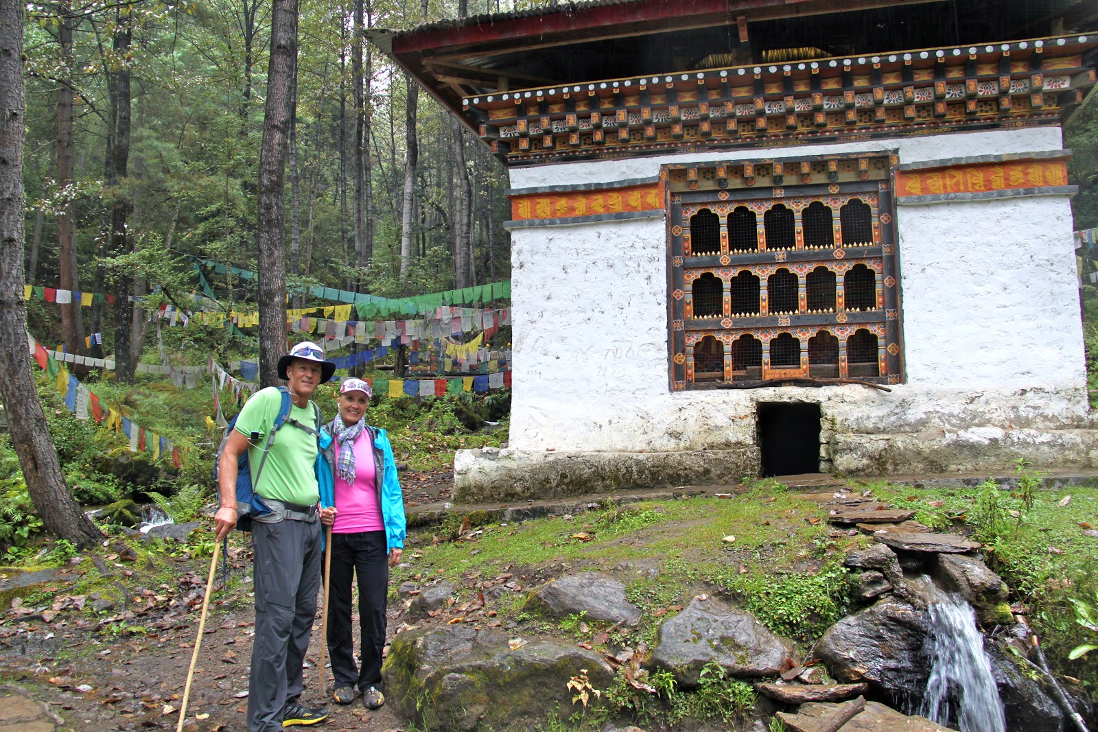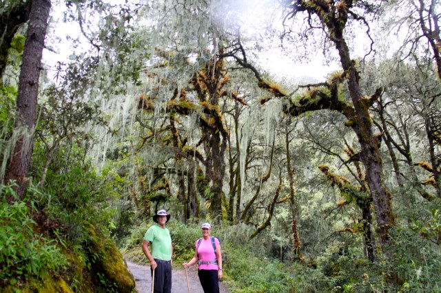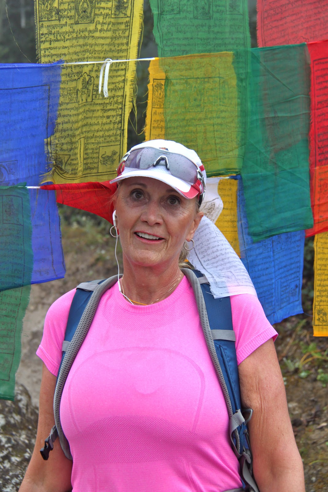 | At times, you might think we were hiking in Oregon! The prayer flags brought us back to reality. |