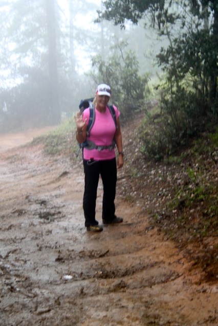 | It was foggy and wet but since we were first on the trail, it wasn’t too slippery—yet. |