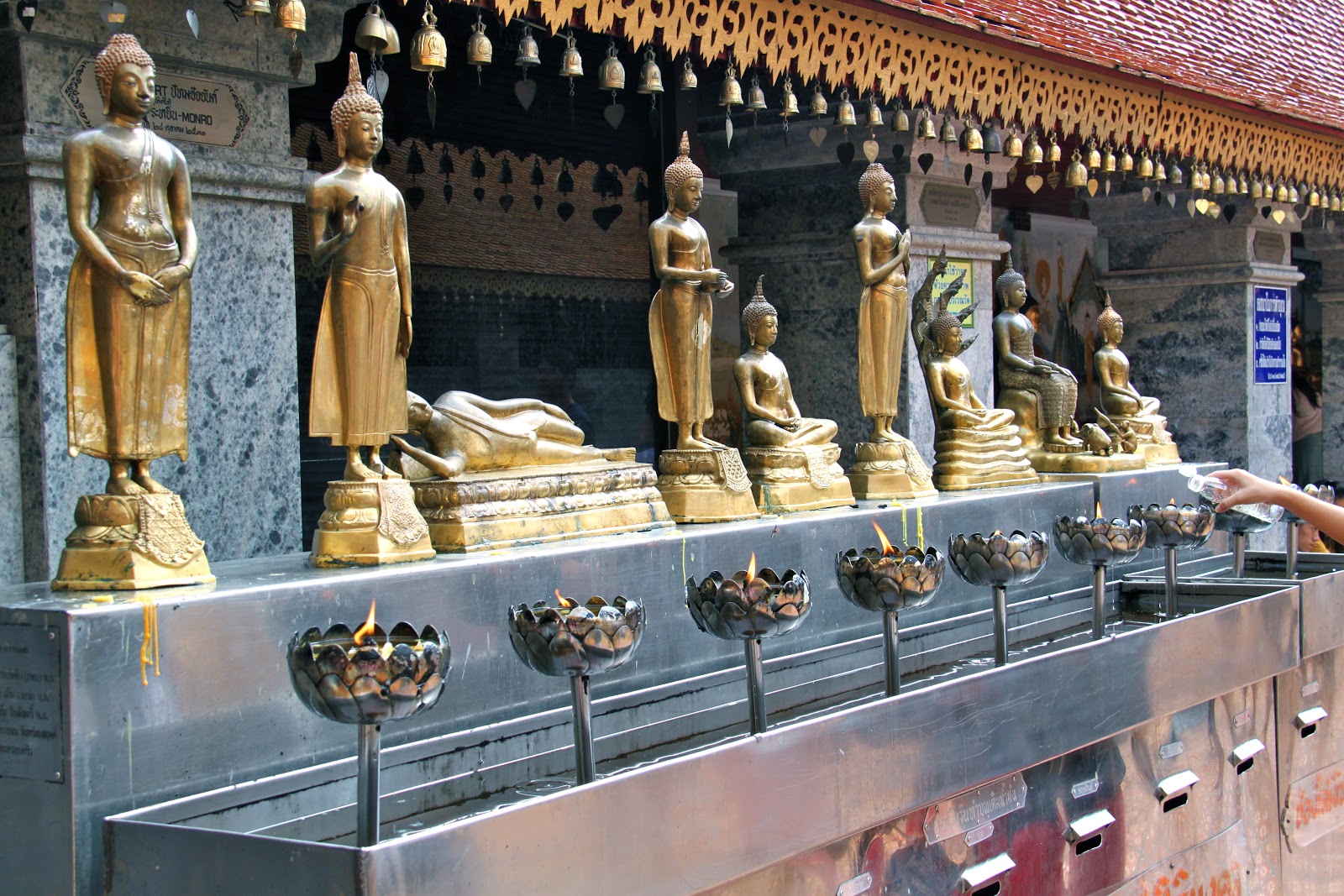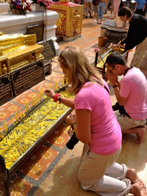 We offered flowers and candles and received a holy white cotton string around the wrist from the Monk as a blessing for happiness and success.
