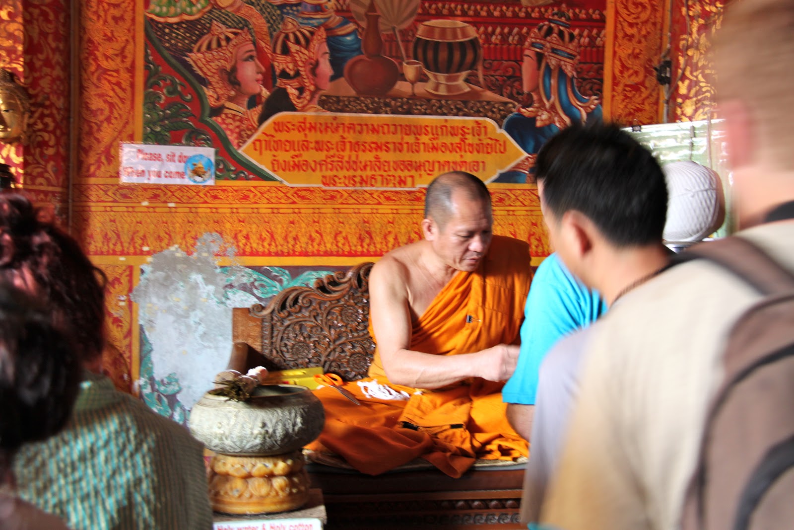 | Inside one of the temples where the Priest gave us a blessing and tied a string around our wrist |