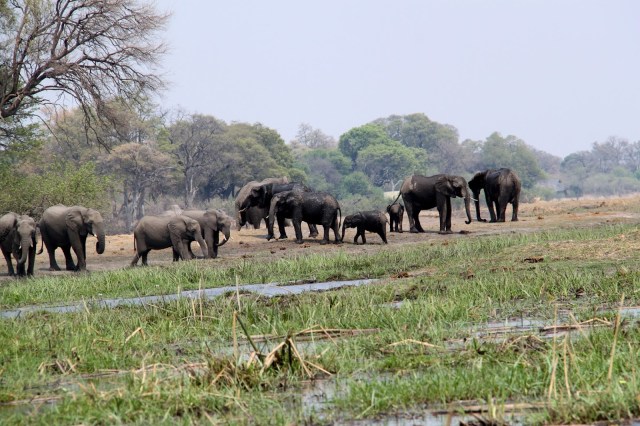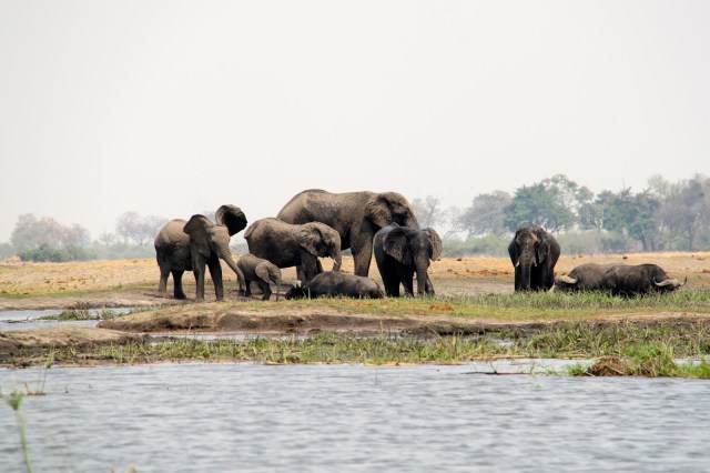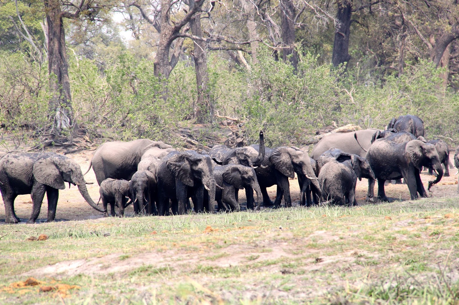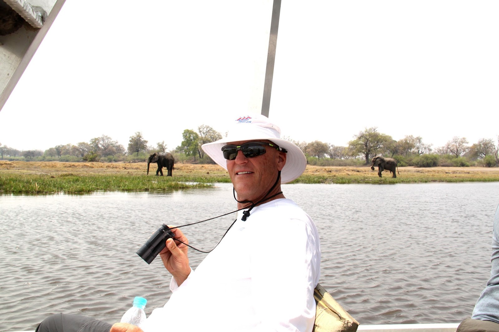 We got into a small boat at the Linyanti and motored slowly past many pods of Hippos since they are very dangerous if they are provoked. We saw maybe 100 Elephants coming down to the river to drink and roll in the mud.