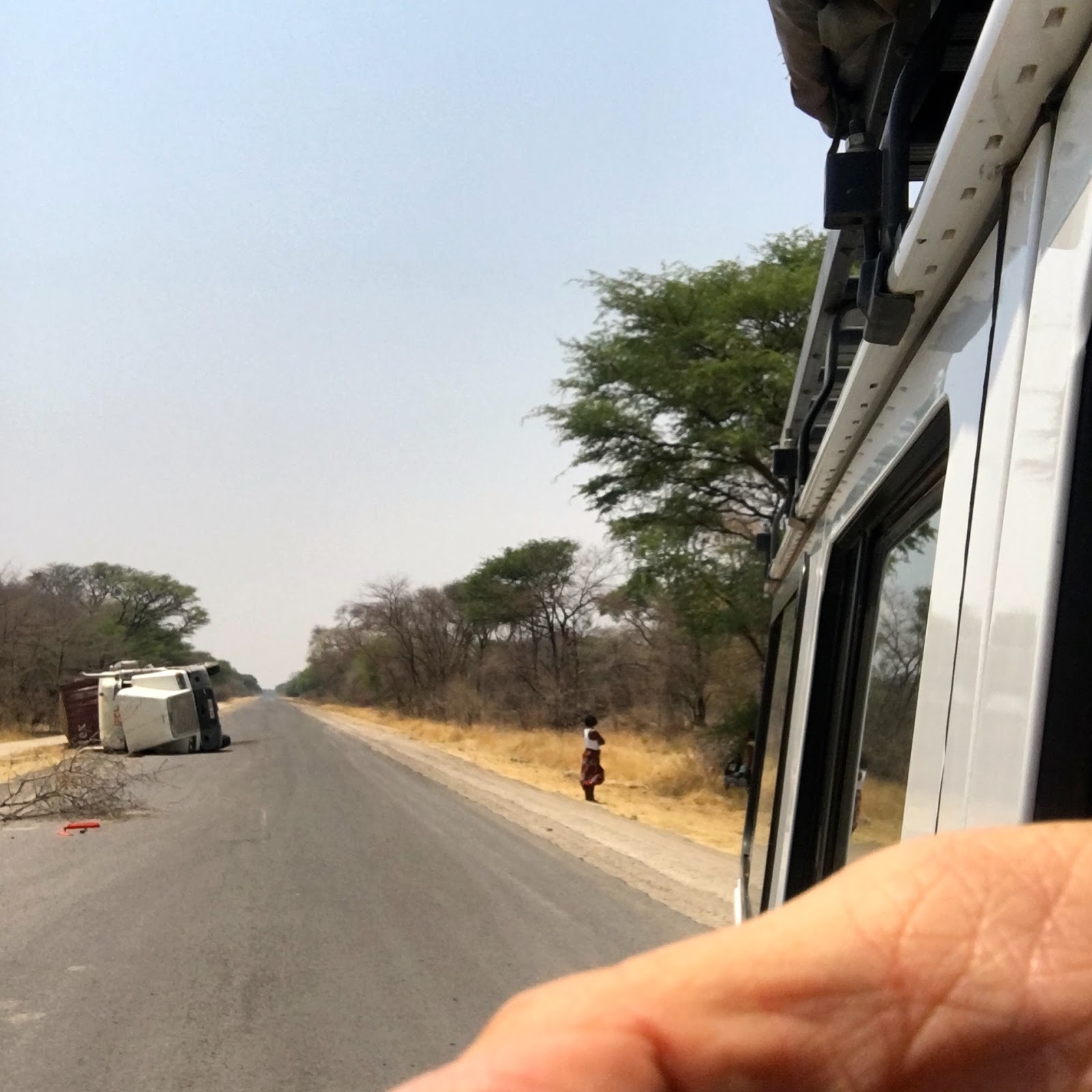 | The roads are so dangerous with bad potholes. The is a large truck on it’s side after hitting a pothole. |