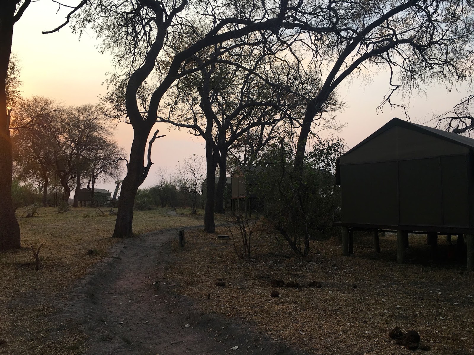 The first camp is the Nkasa Lupala tented camp. We drove 11 kilometers through very deep sand to get to it. This will probably be the most primitive camp that we will visit. Everything is run on solar power. Our tent was very hot during the day, and no fan.