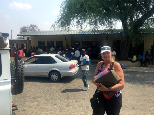 We had to cross the border from Zambia into Namibia. Going out of Zambia was easy, but getting into Namibia was a huge line of locals trying to get across the border to do their shopping. After wandering around, trying to figure out what to do, Scott asked a guard where we go to register our car, and he let us in the front of the long line. Thank goodness!