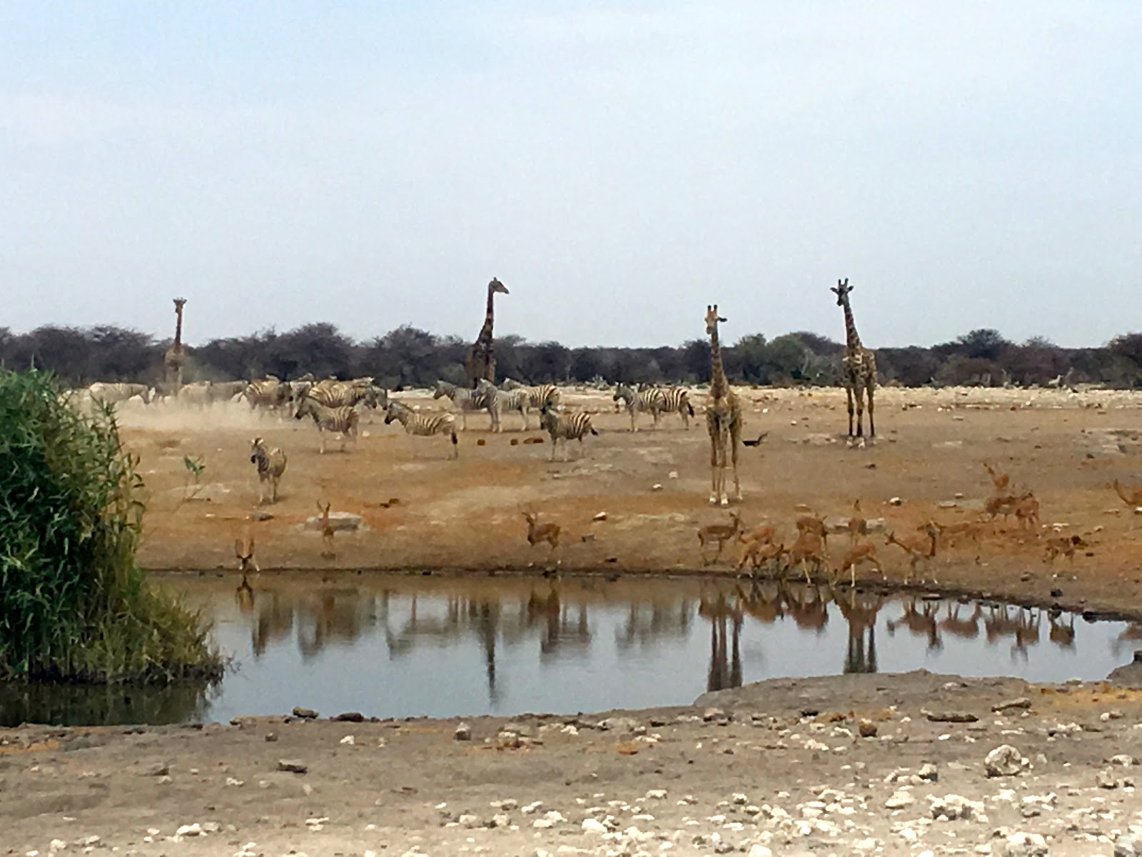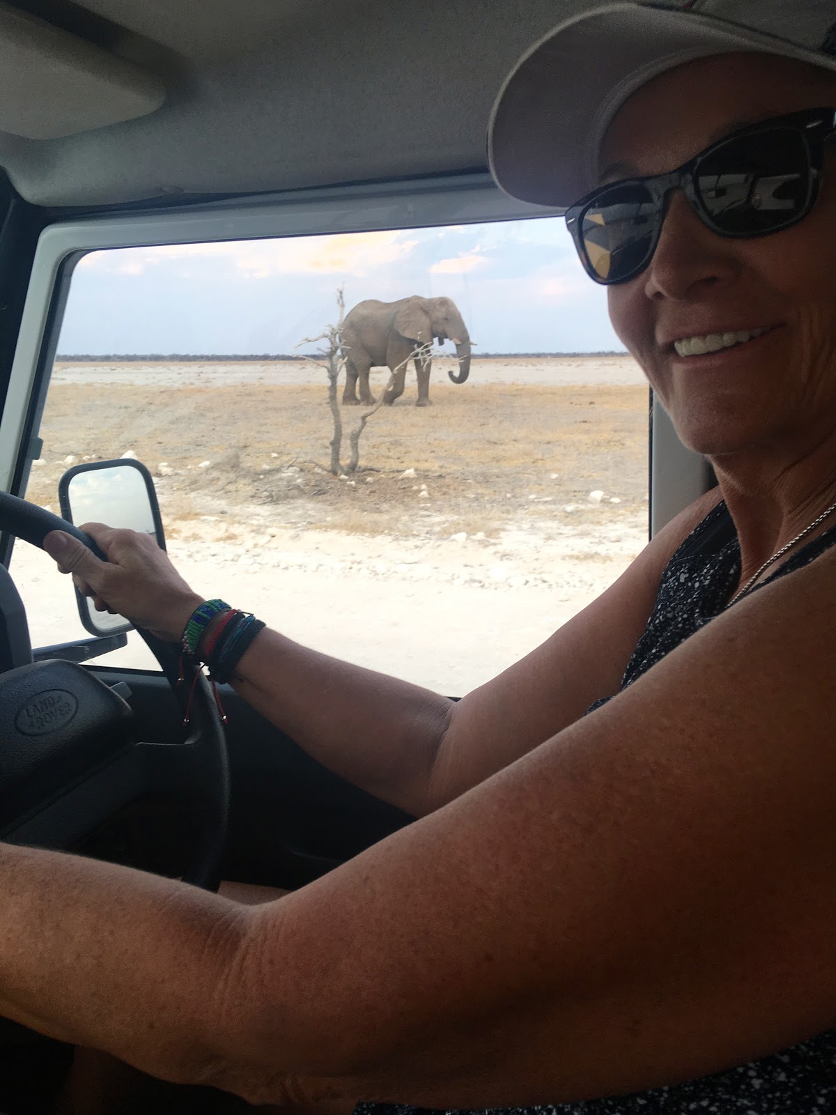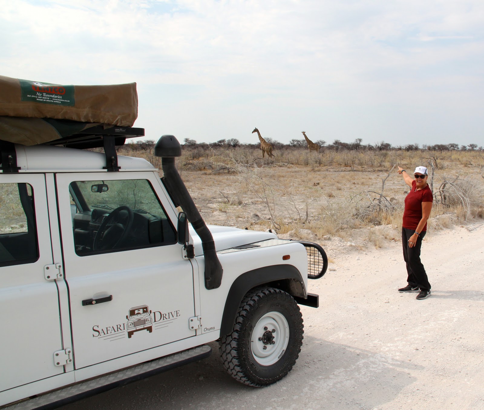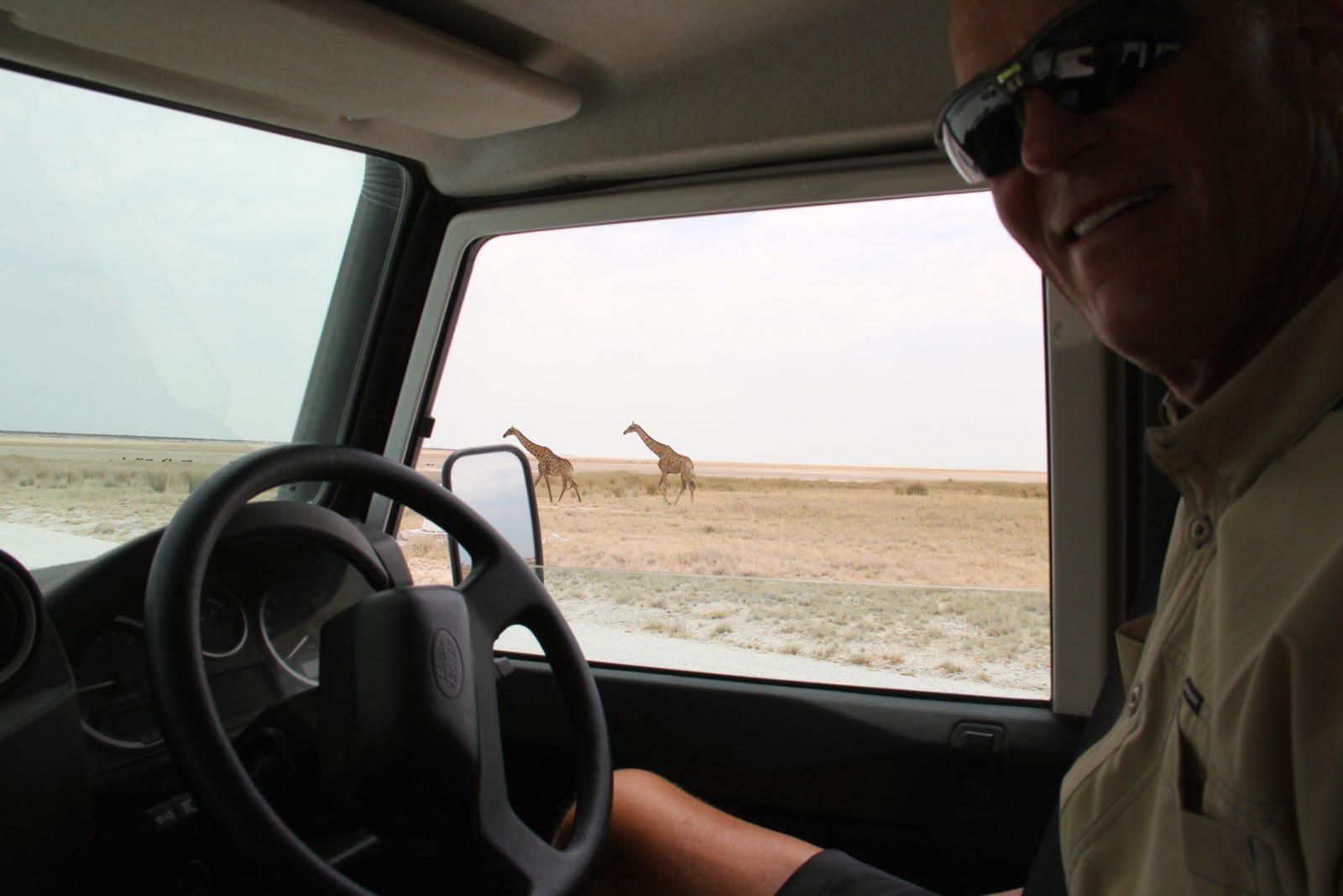 After breakfast we drove our Land Rover back into the Etosha Game Park. We saw animals everywhere we looked. We saw lots of Giraffe (Barb’s favorite African animal).