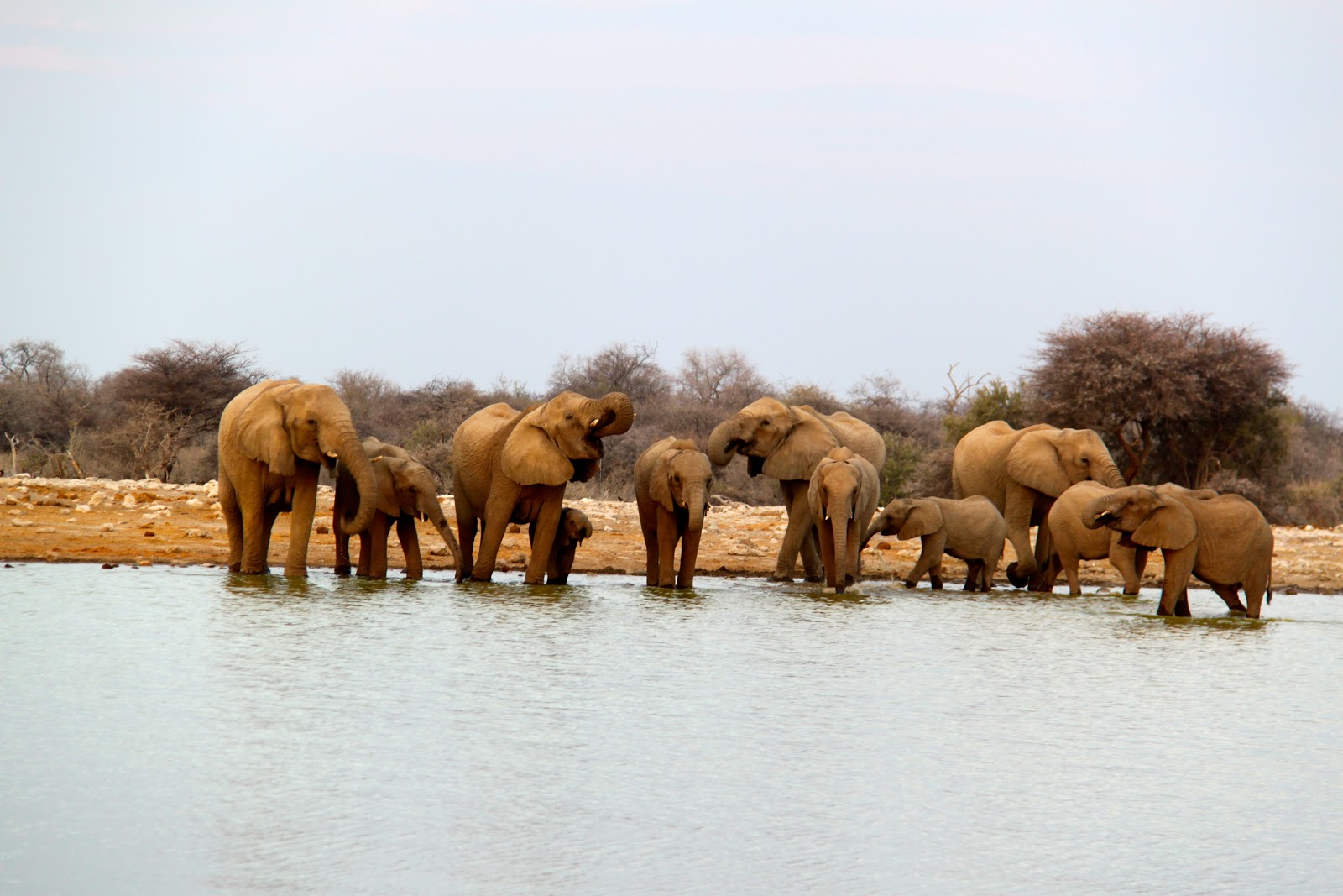 After a 4-½ hour drive from Rundu area we arrived at the East Gate of Etosha Game Park and put our luggage in our tent and went for a game drive. Within the first 15 minutes we had seen Elephant, Giraffe, Zebra, Black Faced Impala, Gemsbok, and two male Lion sleeping under a tree. This area of Namibia is amazing. There are so many animals. We are like little kids discovering animals everywhere we look.