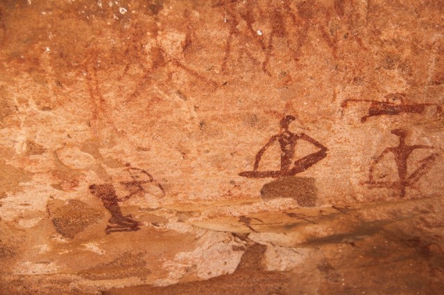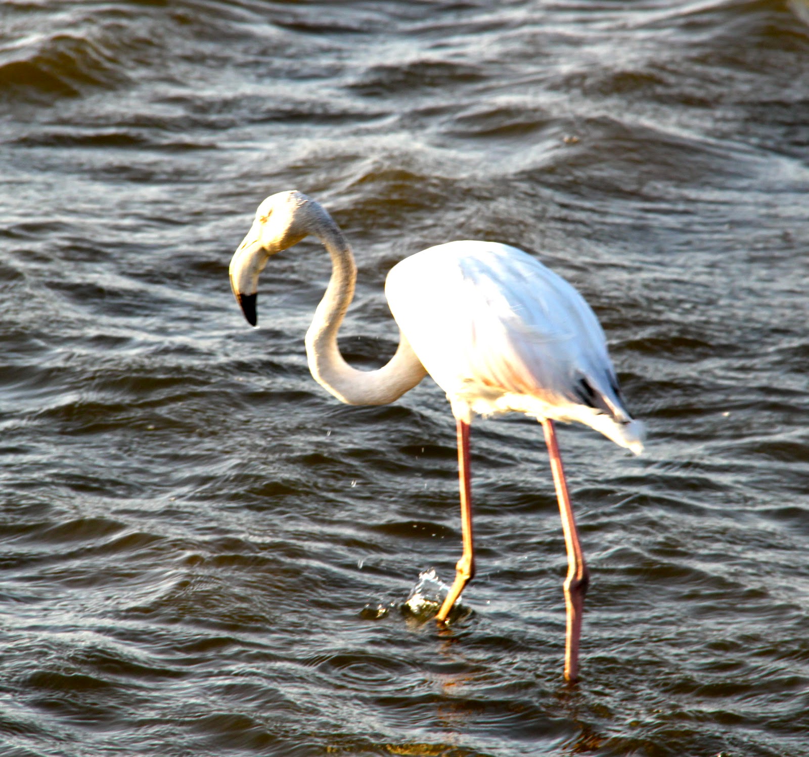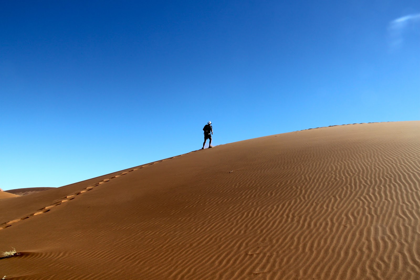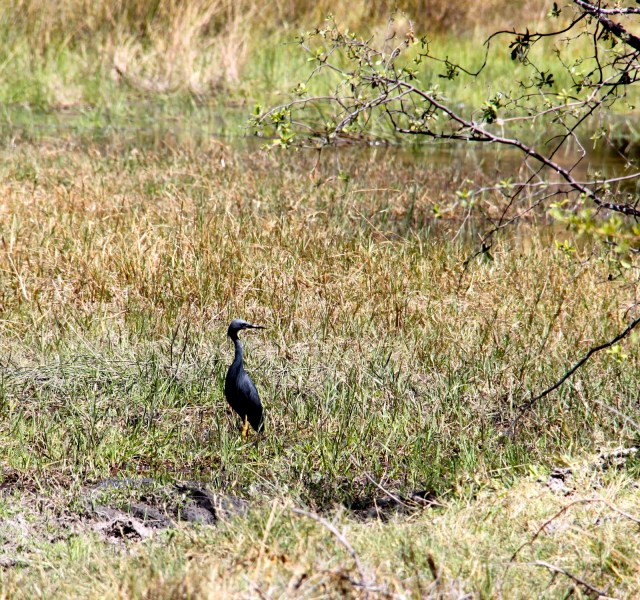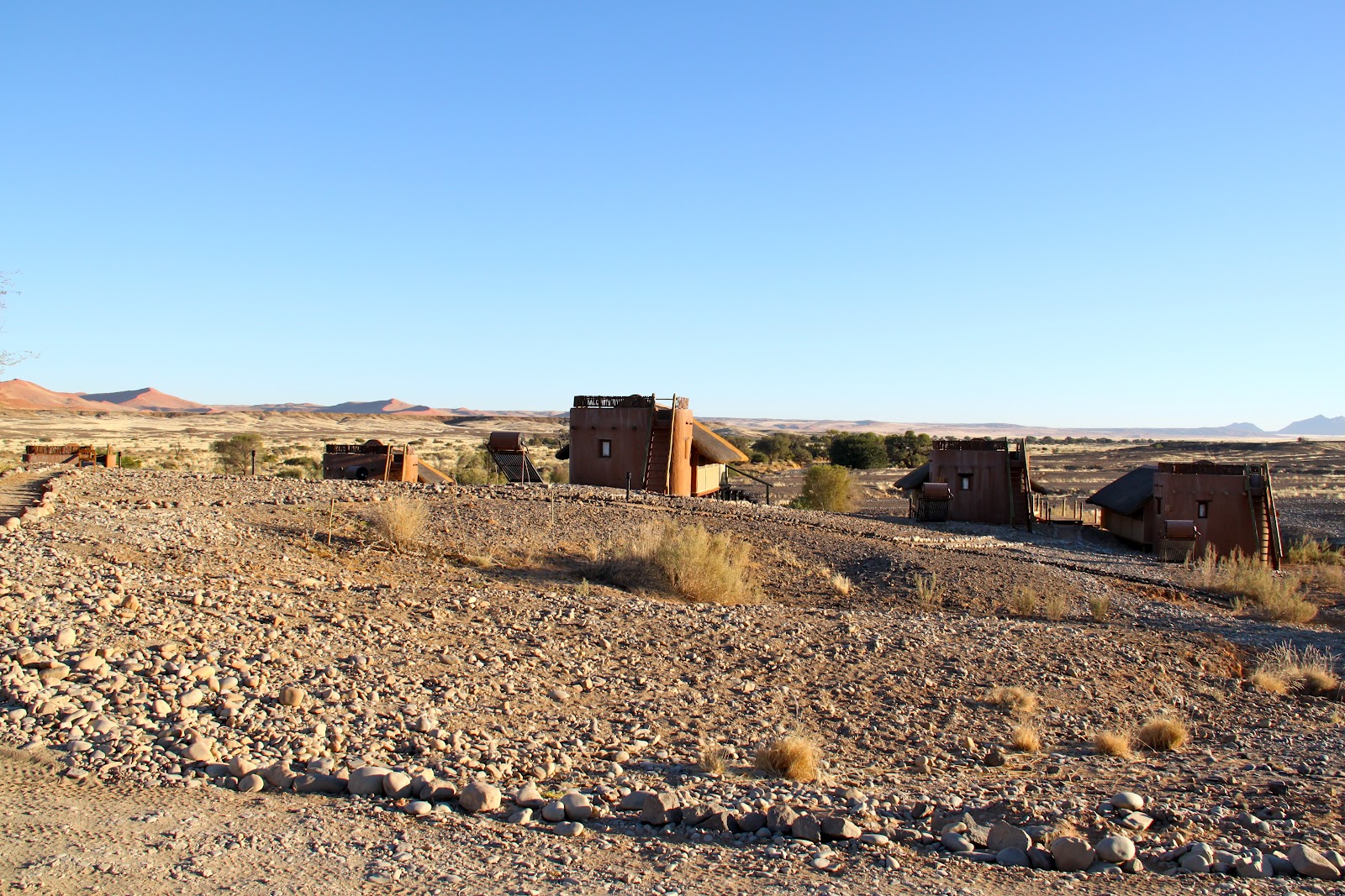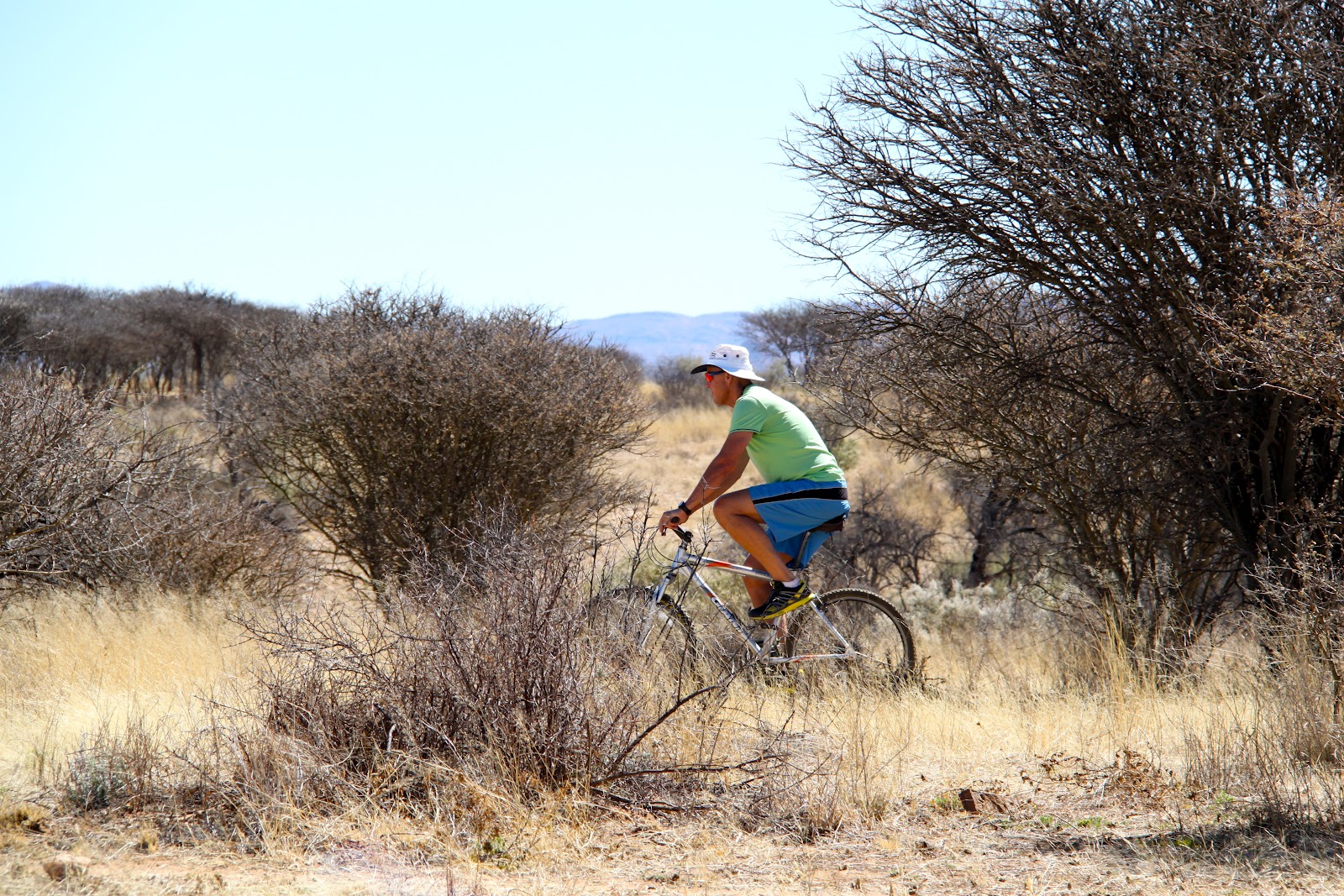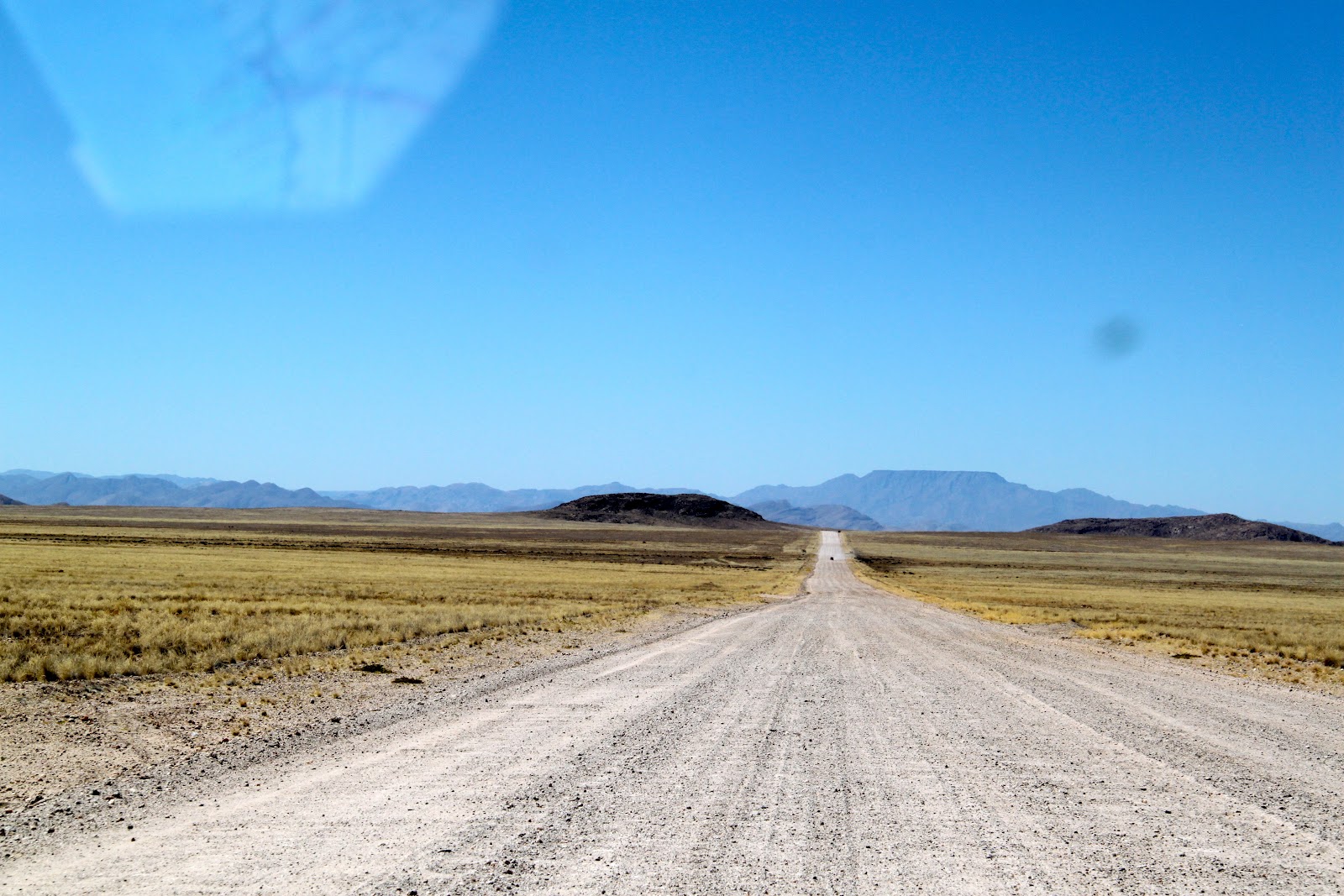 With a 6 am wake-up (a knock on your rock and thatched roof hut, as there are no phones or Internet), we are out to Etosha National Park. This morning we are going with a guide. Our guide drove 20 minutes to the park entrance and through the gate and immediately turned off the main road onto dirt roads. We noticed most vehicles were going a different direction. For the first hour there seems to be fewer animals than were outside our Ongava hut. But soon we saw 4 lazy lionesses. Then we saw springbok, oryx, and a solitary spotted hyena. It is very unusual to see a solitary hyena. They travel and hunt in packs. Then we saw springbok, male ostrich (their brains are smaller than one of their eyes) and herds of zebra, giraffe, wildebeest (a.k.a. gnu), kory bustard (a very large bird), a black faced impala (endemic to Namibia), kudu, hartebeest, warthog, and elephant. There are thousands of animals in Etosha. There are water holes in Etosha and animals migrate to the water.