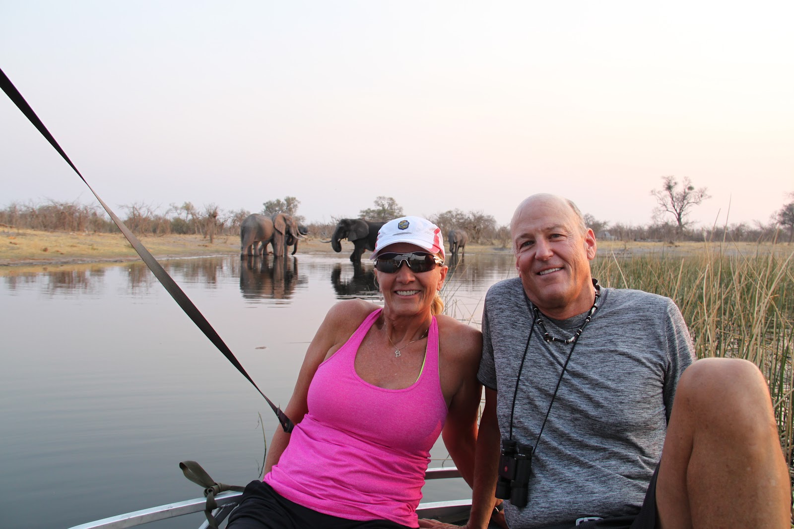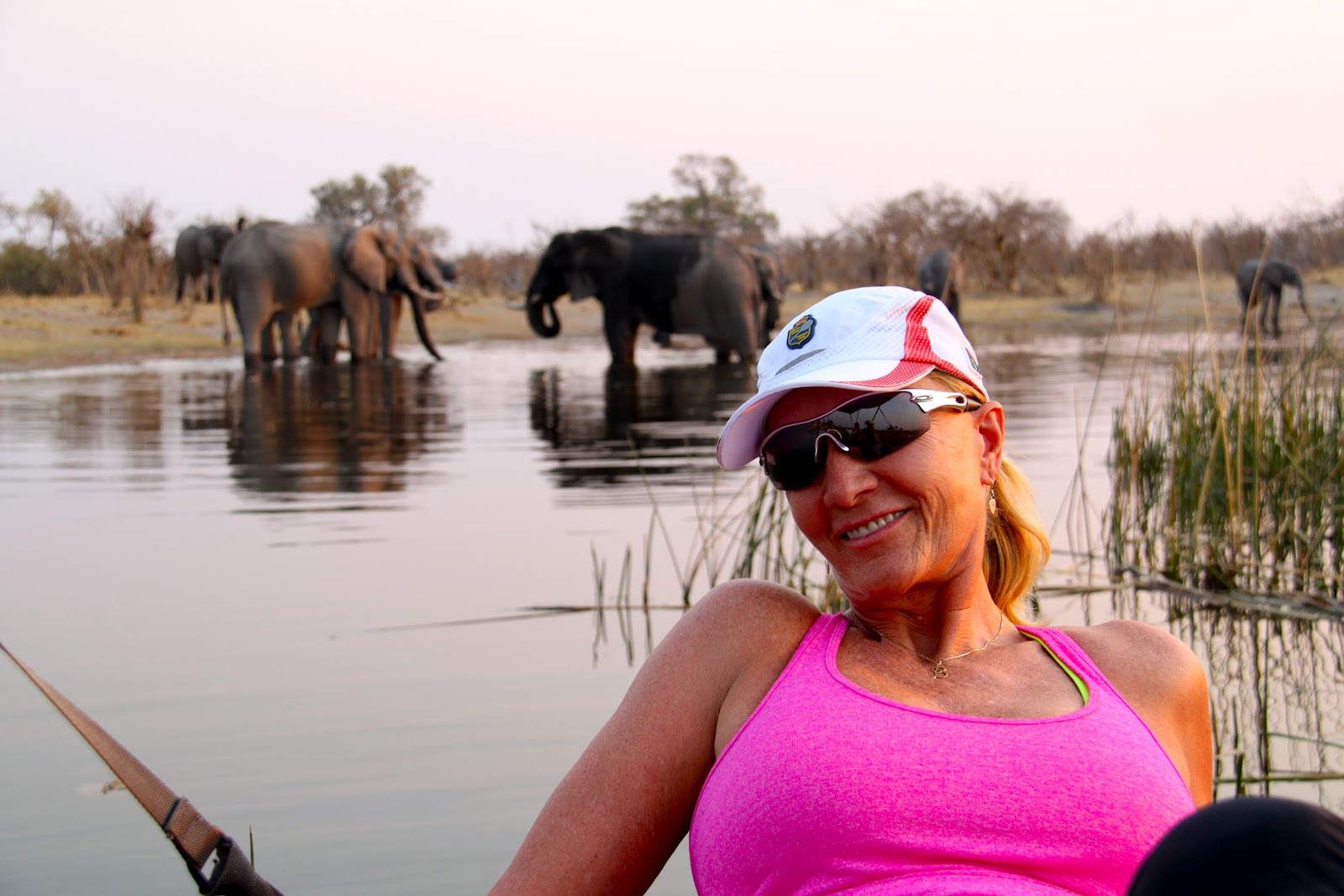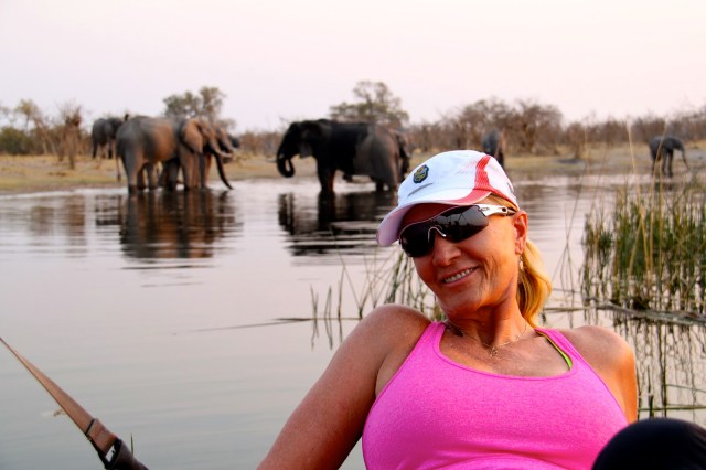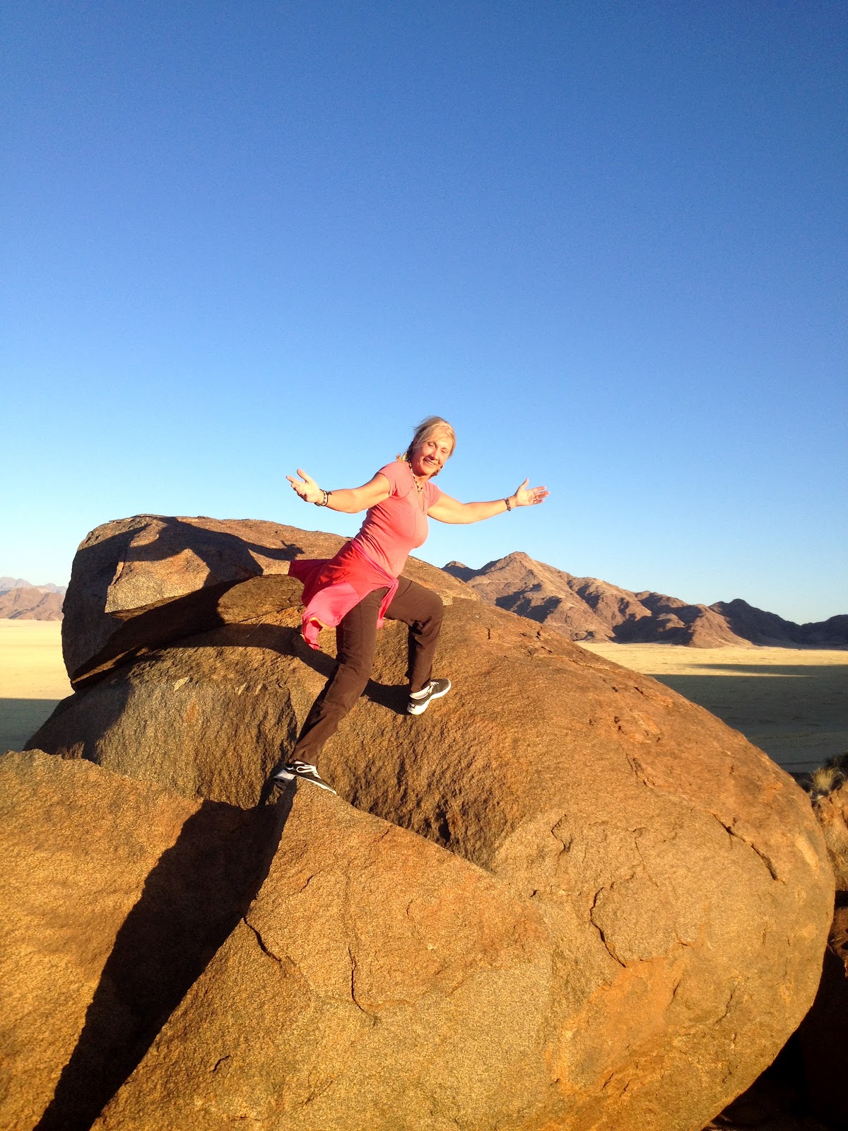 In the afternoon we drove back into Etosha in our Jeep without a guide. It is fun to go where we want and discover on our own. The top roof panels of our Jeep come off and we are able to stand on our seats and view animals and take photos. What fun! All roads are dirt, rock and rough. We found two more large herds of elephants in different areas of the park with 20 to 30 members each. We saw elephant mating behavior that was hysterical. The female seemed to be in charge and the male fell off her back and into the mud.