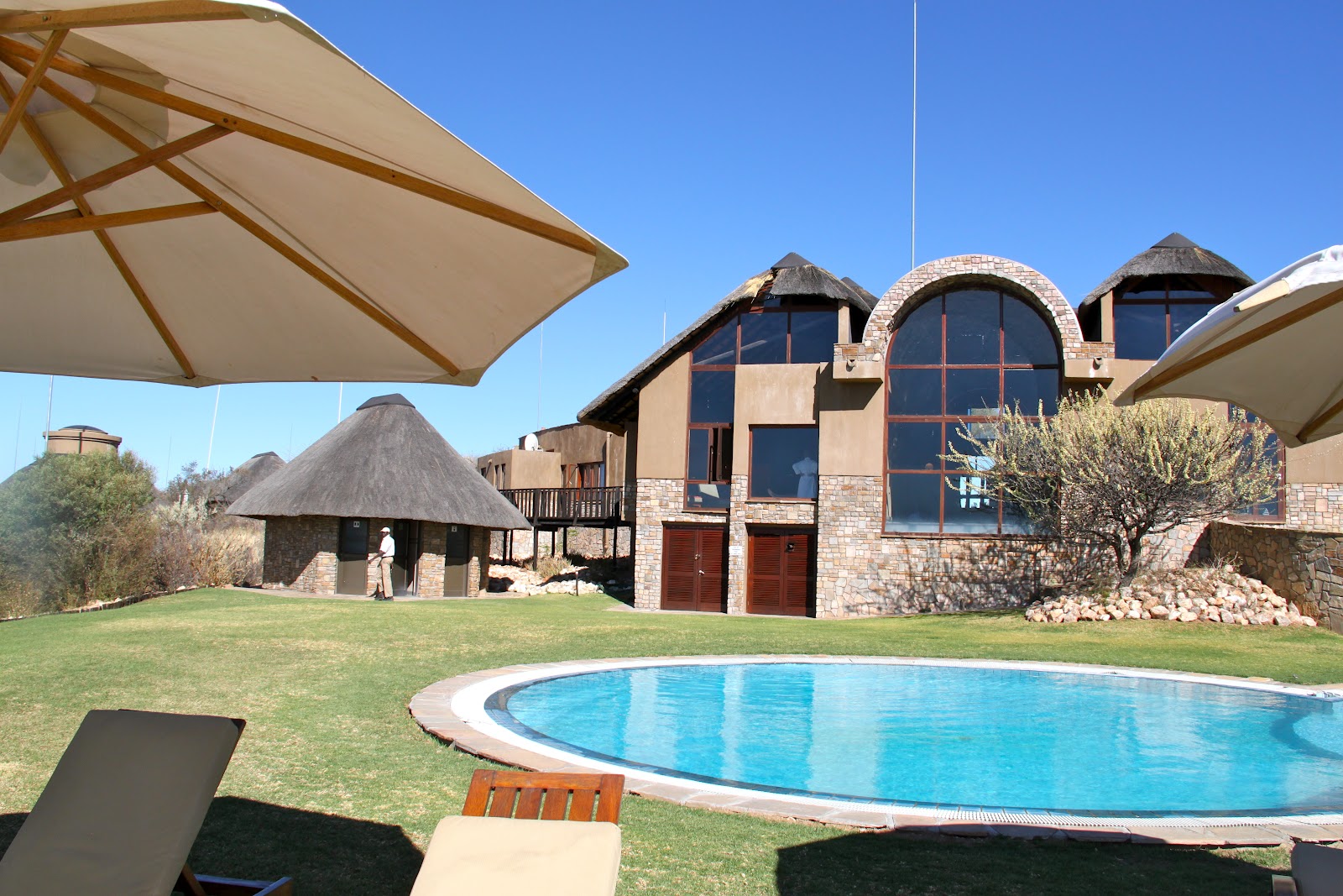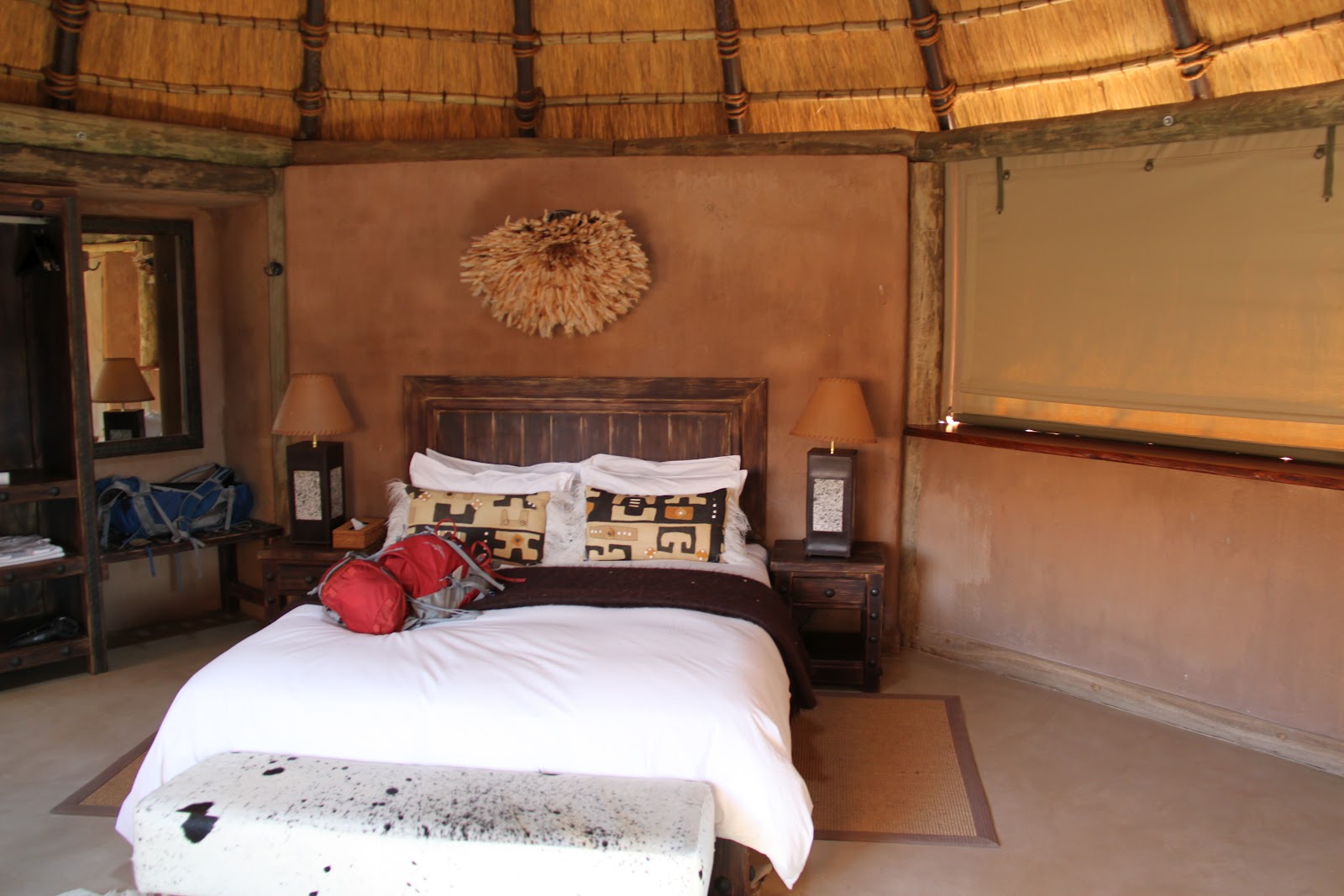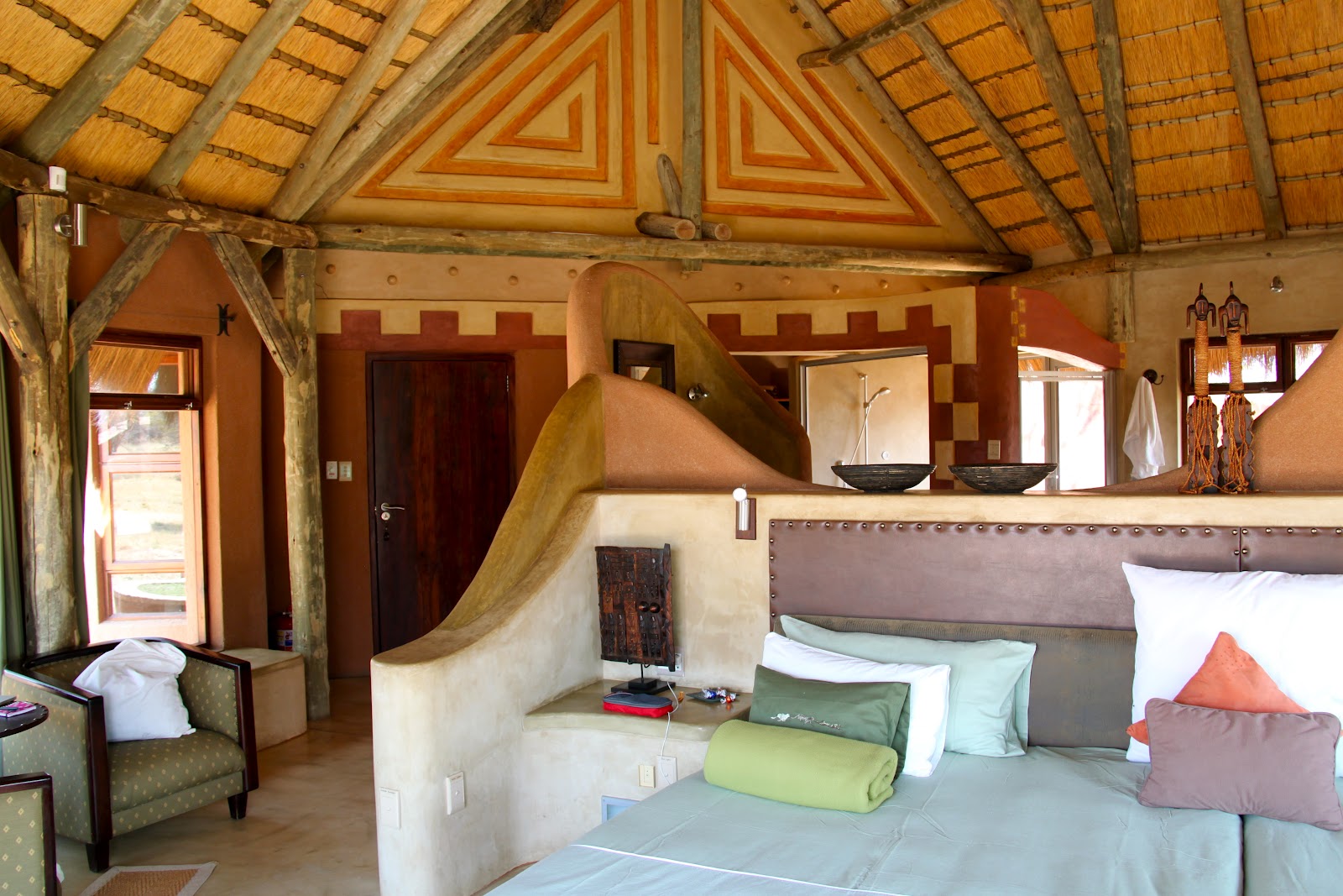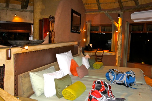 Ongava Lodge is 2 1/2 hours north of our last stop. It is just outside of Etosha Game Park, which comprises 22,000 square kilometers filled with lots of animals. It is a salt pan. Ongava Lodge has 14 huts that are up high for viewing the watering hole where many of the animals come to drink.