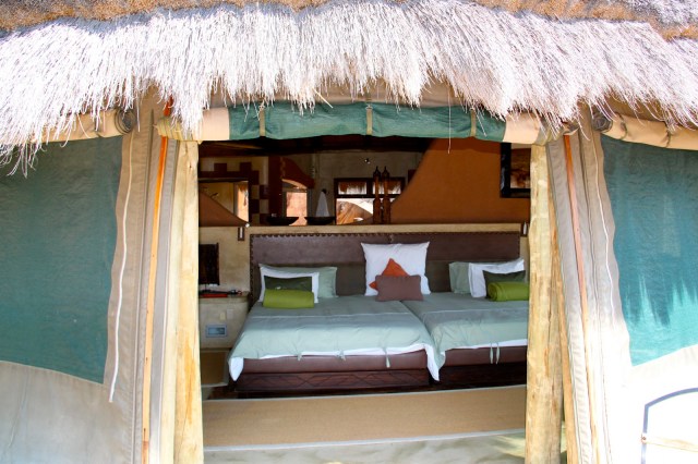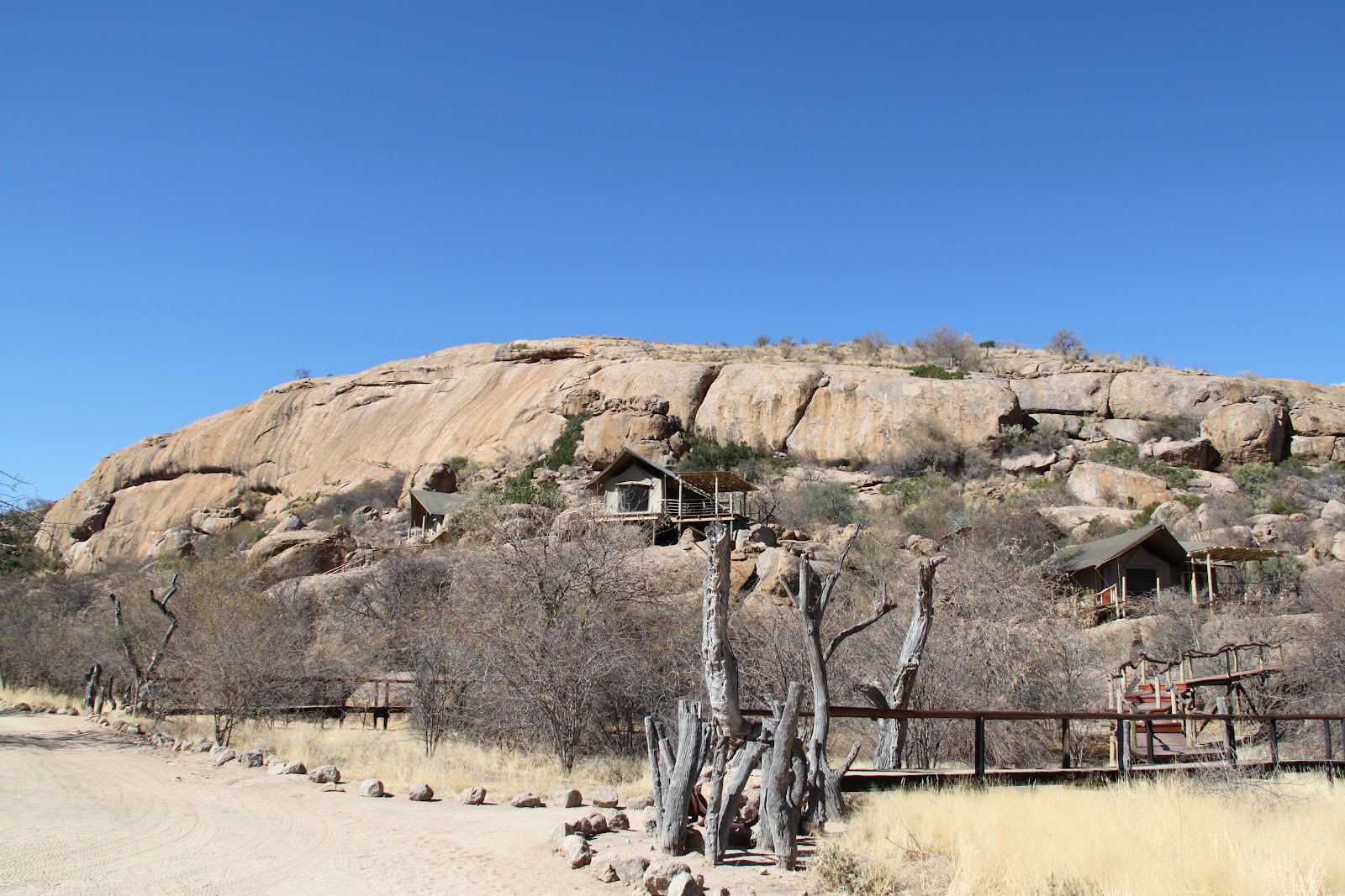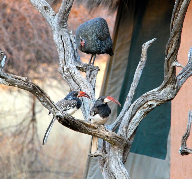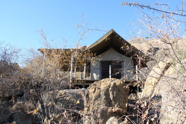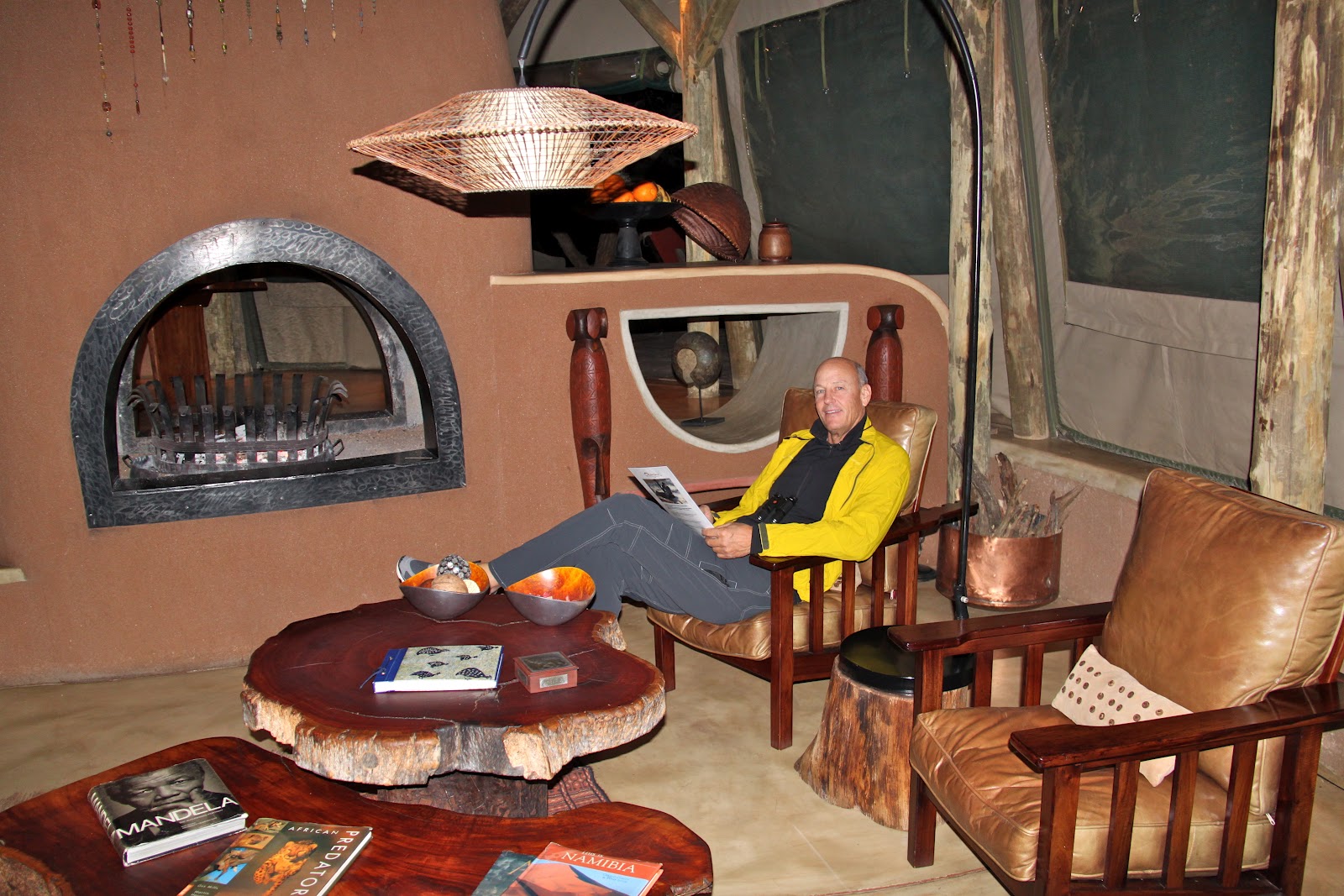 Ongava Lodge is 2 1/2 hours north of our last stop. It is just outside of Etosha Game Park, which comprises 22,000 square kilometers filled with lots of animals. It is a salt pan. Ongava Lodge has 14 huts that are up high for viewing the watering hole where many of the animals come to drink.