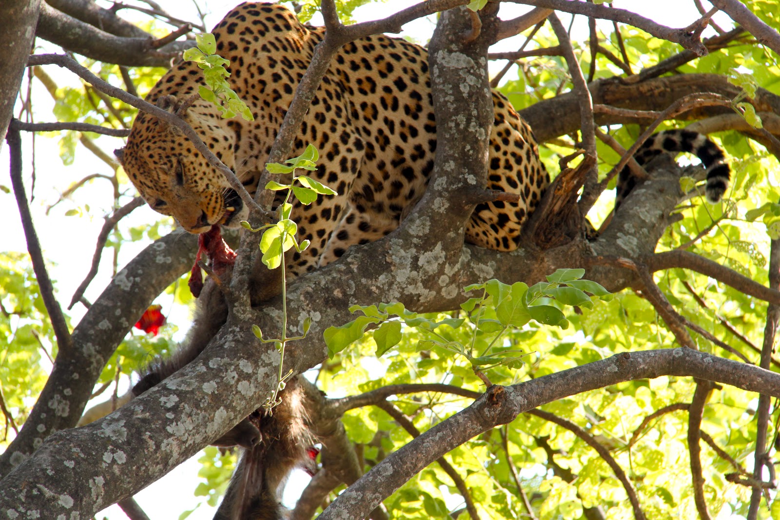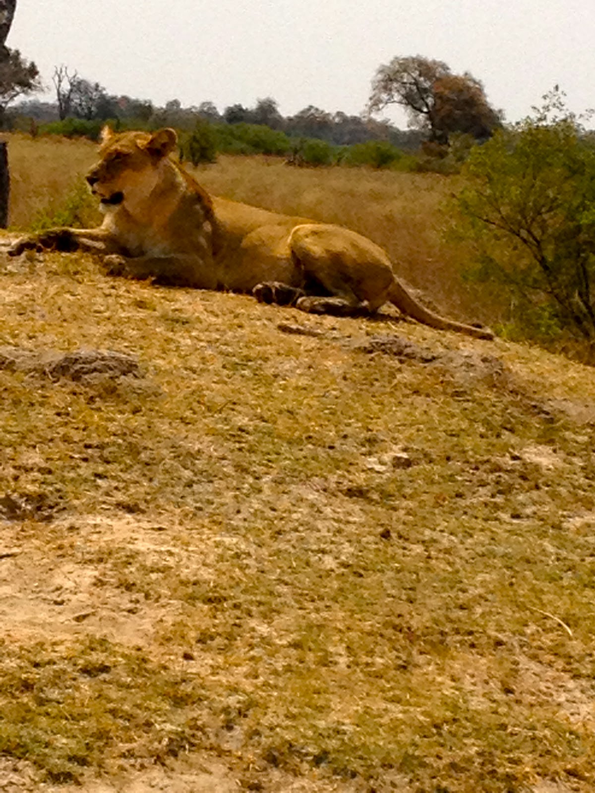 Our idea was to return to the Lion kill we saw at dusk the night before. Sure enough, 2 Lions were still ripping it apart, although it was down to the vertebrae with a little black and white Zebra skin to chew on. The Lions’ bellies looked very full. (It was cool to stand on the car seat, head through the roof and take pictures-but I’m glad their bellies were full).