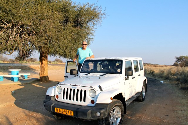 Okay, how is this for a good Omen? The next morning we are driving back in to Etosha Park in our Jeep, top off across the front seats, “The Circle of Life” from the Lion King playing through the speakers from my IPod, and I said to Scott, “All we need are some Giraffe’s walking to our music”. We look to the right in the golden savannah grass, and there are 2 Giraffes walking with necks bobbing in time as they walk with the music!! It was awesome!