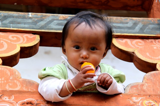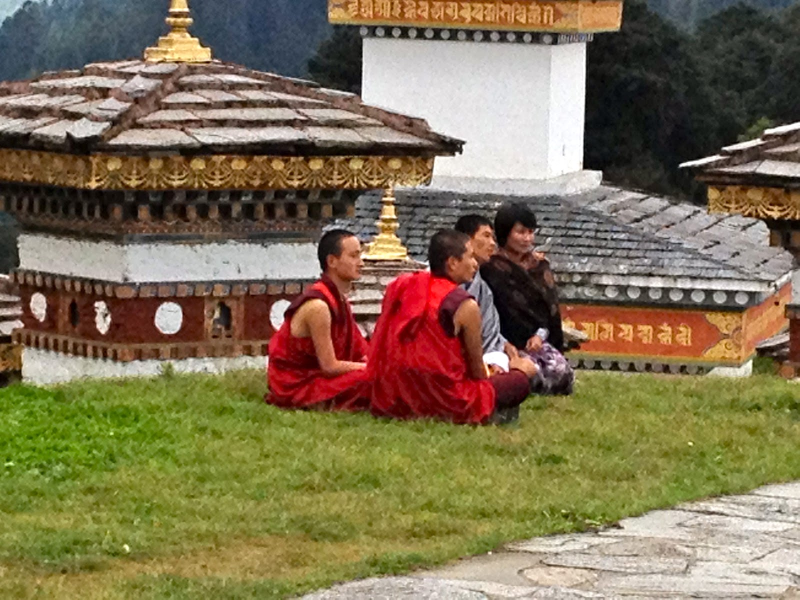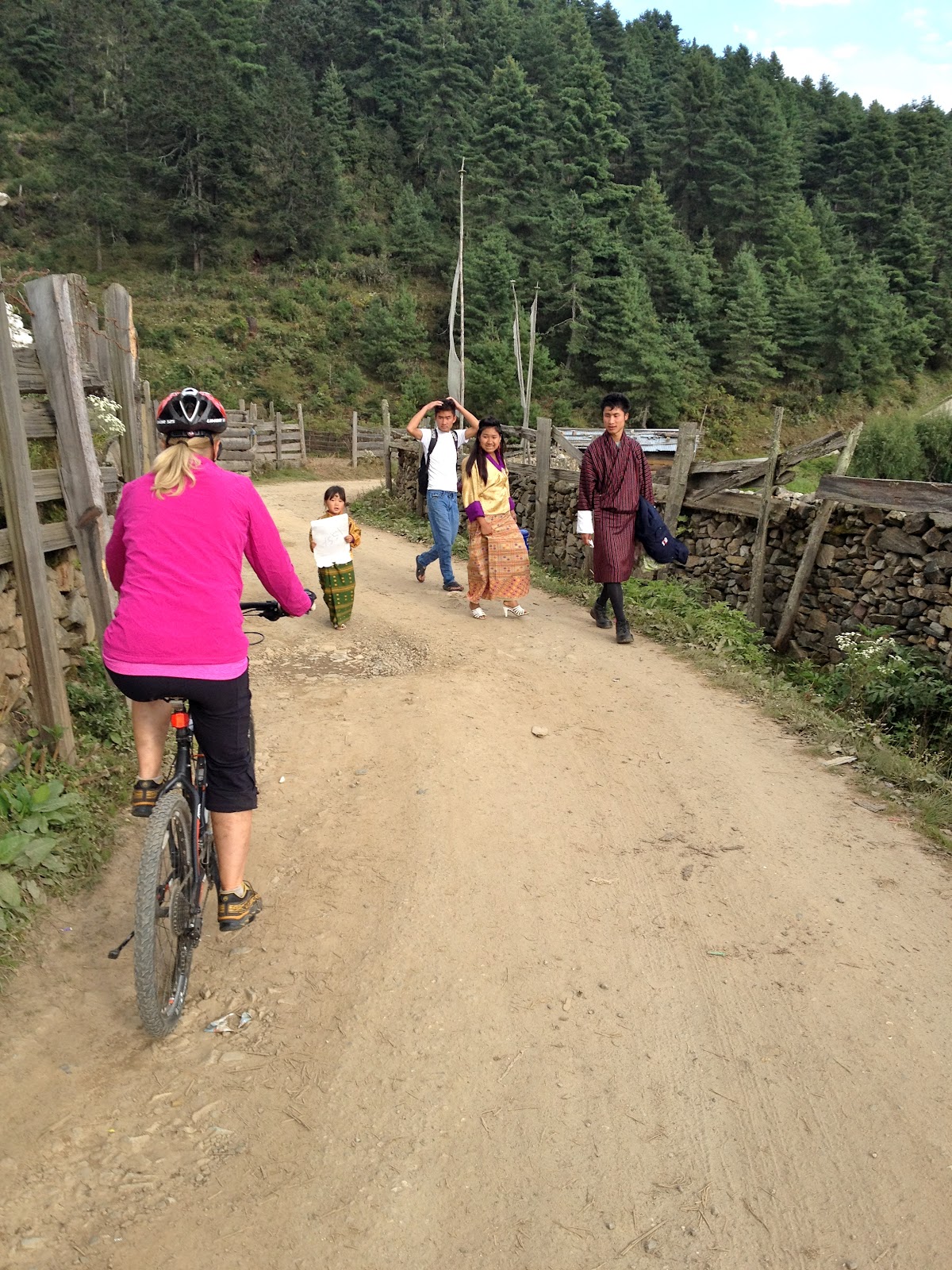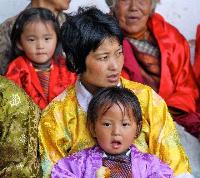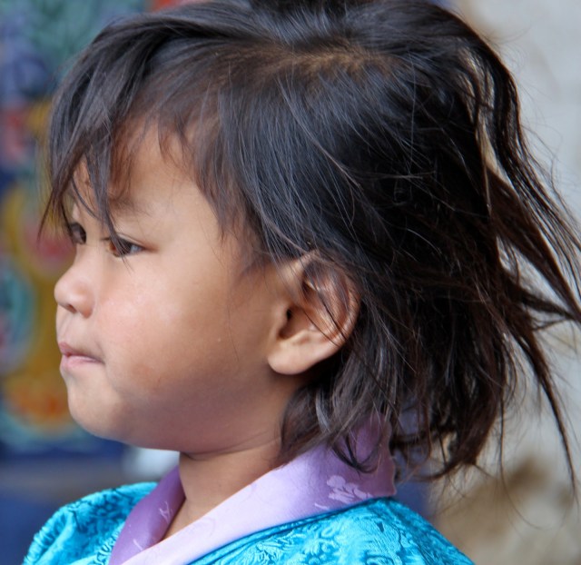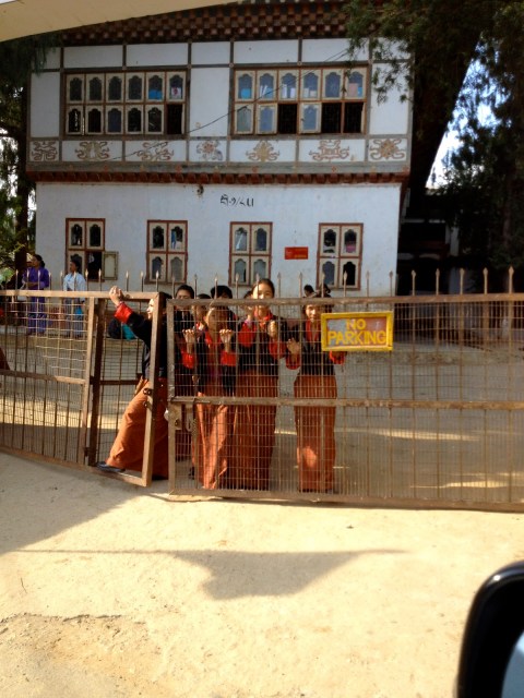 Bhutan separates religious matters and matters of state but the state dictates that the people must wear the traditional dress of ancient Bhutan everyday except for Sunday. The men wear a Gho dress and the women wear a Kira dress. I don’t sense that anyone has a problem wearing the traditional dress. All the people are friendly and children are curious and will speak a few English words. English is required study in school. School is compulsory.