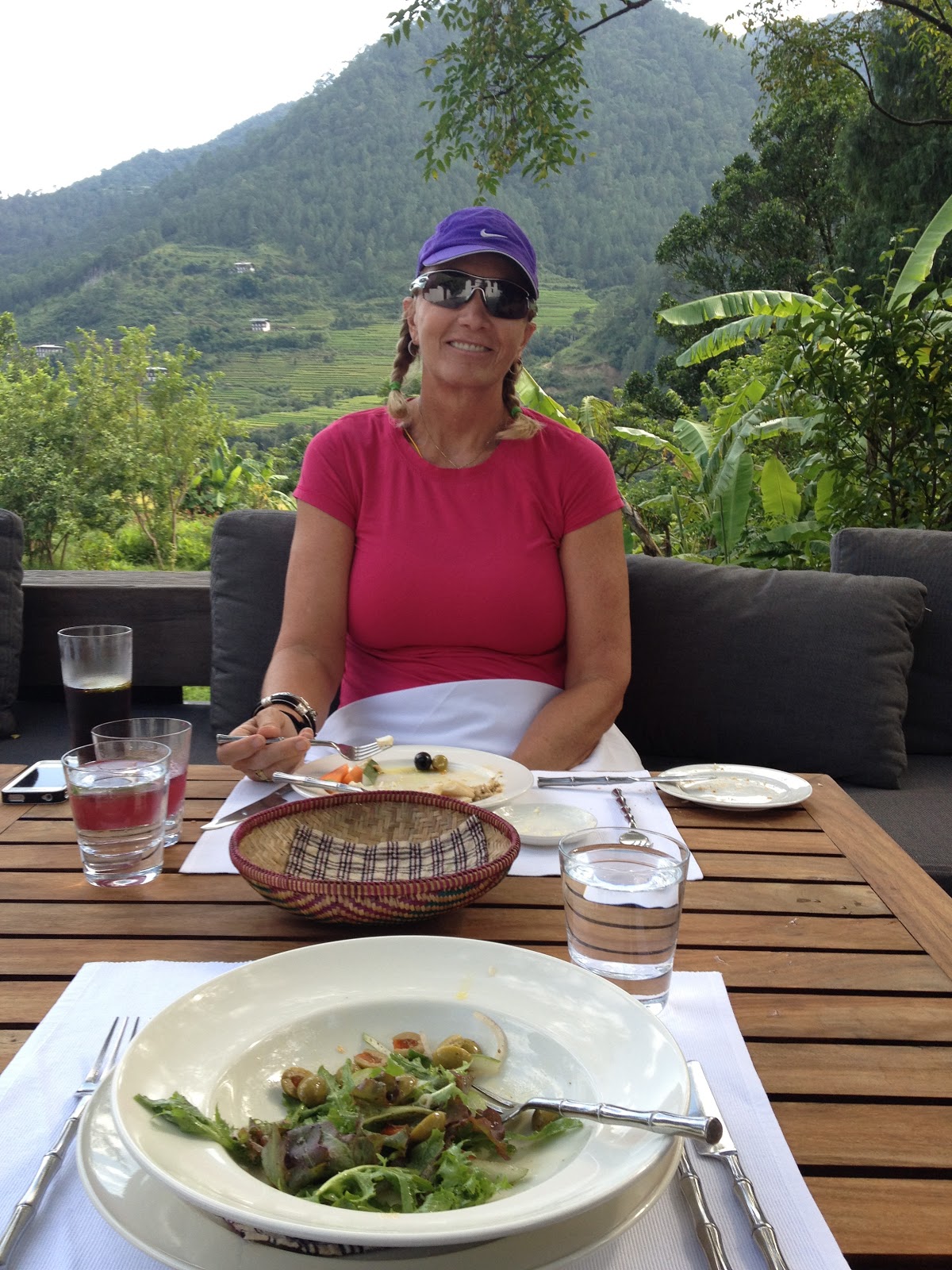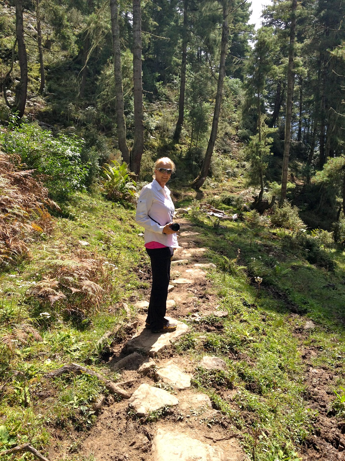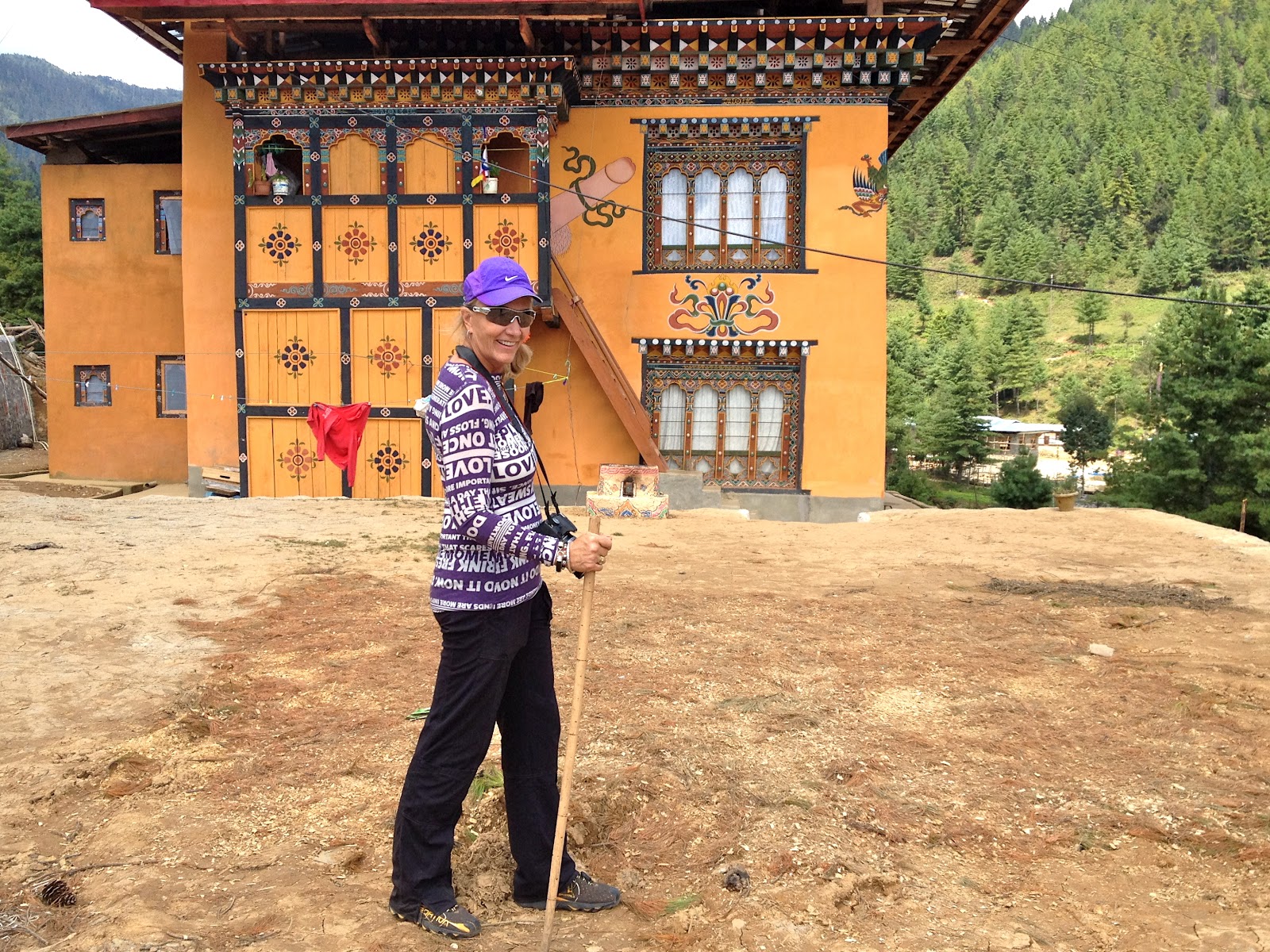 In the afternoon we went for a hike to a 17thcentury temple high on the mountainside above Timphu. We drive up to the beginning of the hike and it is a fairly flat walk of about 3 kilometers but we are sucking air at 9000 feet and the uphill portions of the hike practically bring us to our knees. Hopefully we will acclimate soon.