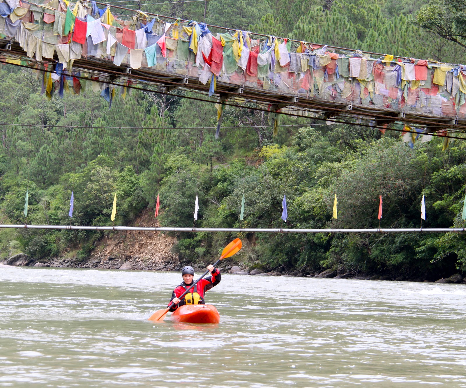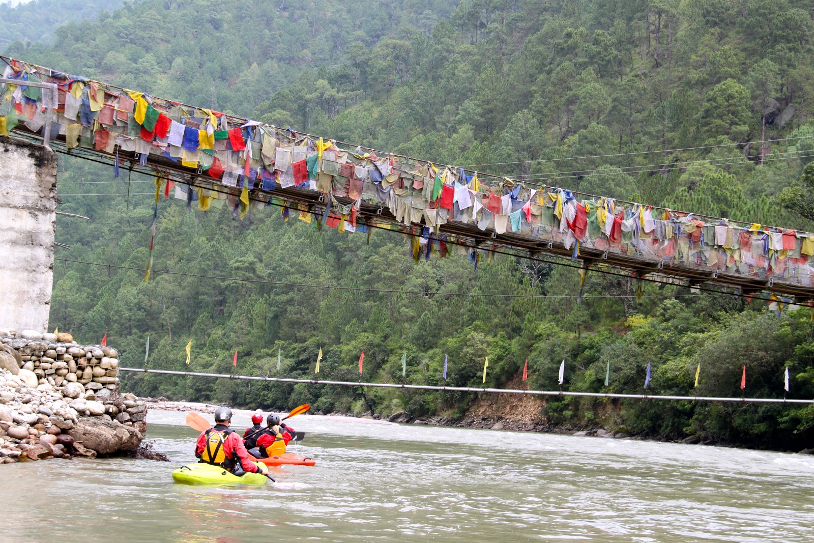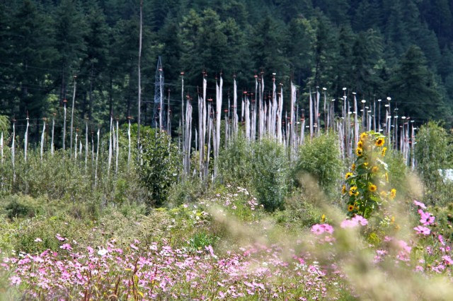 | Prayer flags everywhere and when wind blows the prayer is sent |