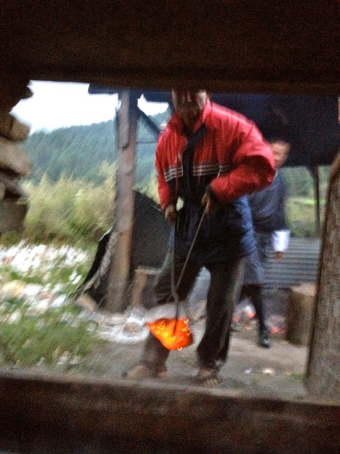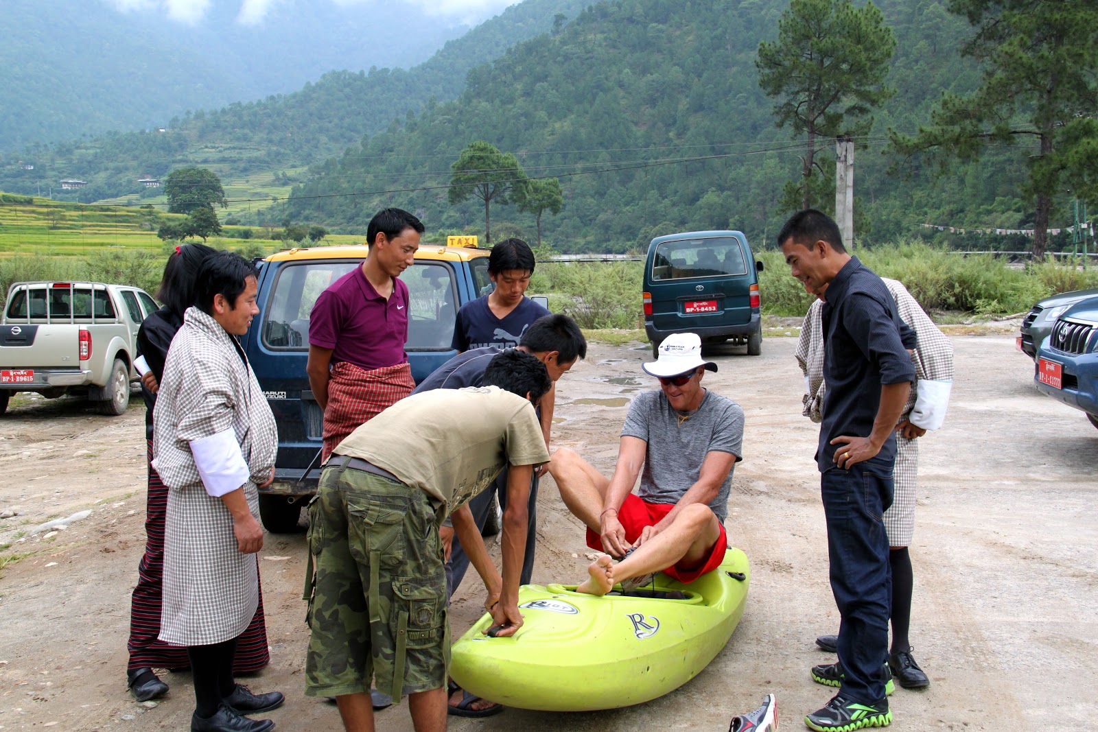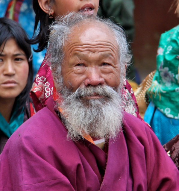 | Scott meets our guide. His name is Tashi, and they all must wear their native costume |