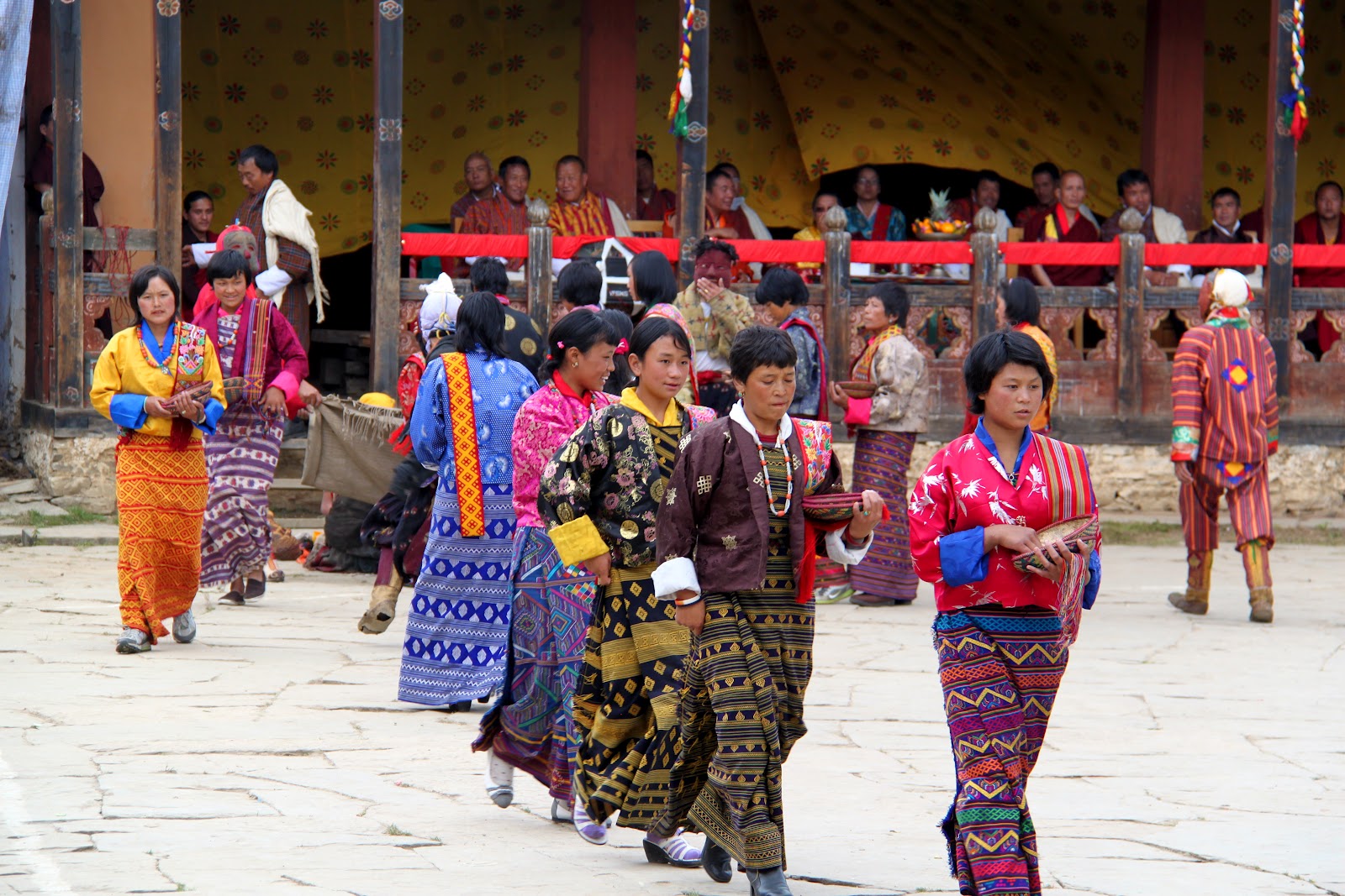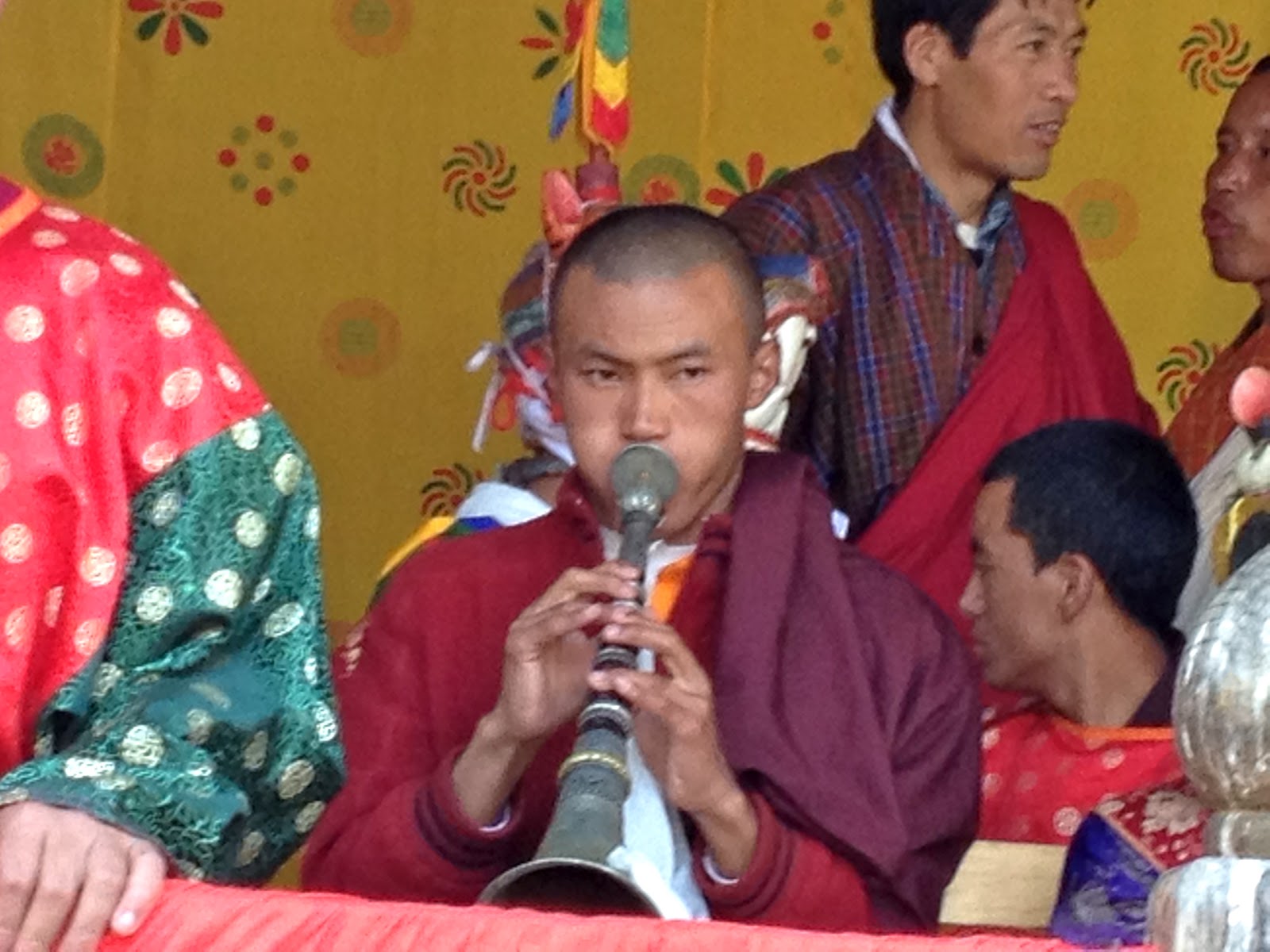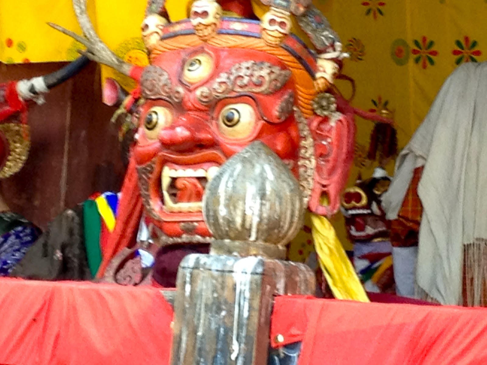 threincarnation of the Guru Rimpoche into the square and up the stairs next to us in front of the tent with all of the monks.