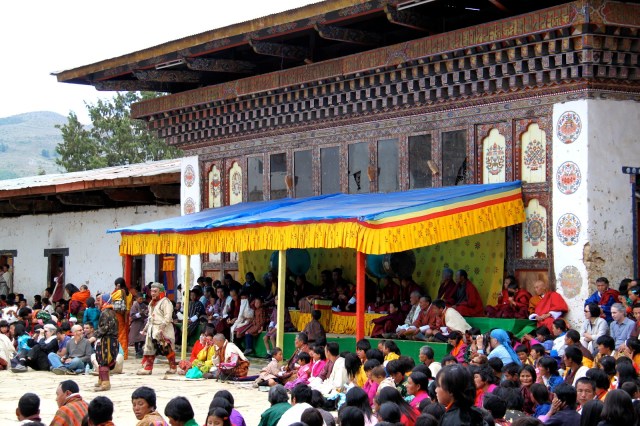 After breakfast we go to the Tshechu Festival which is held at the Tashichho Dzong. Dzong means fortress.